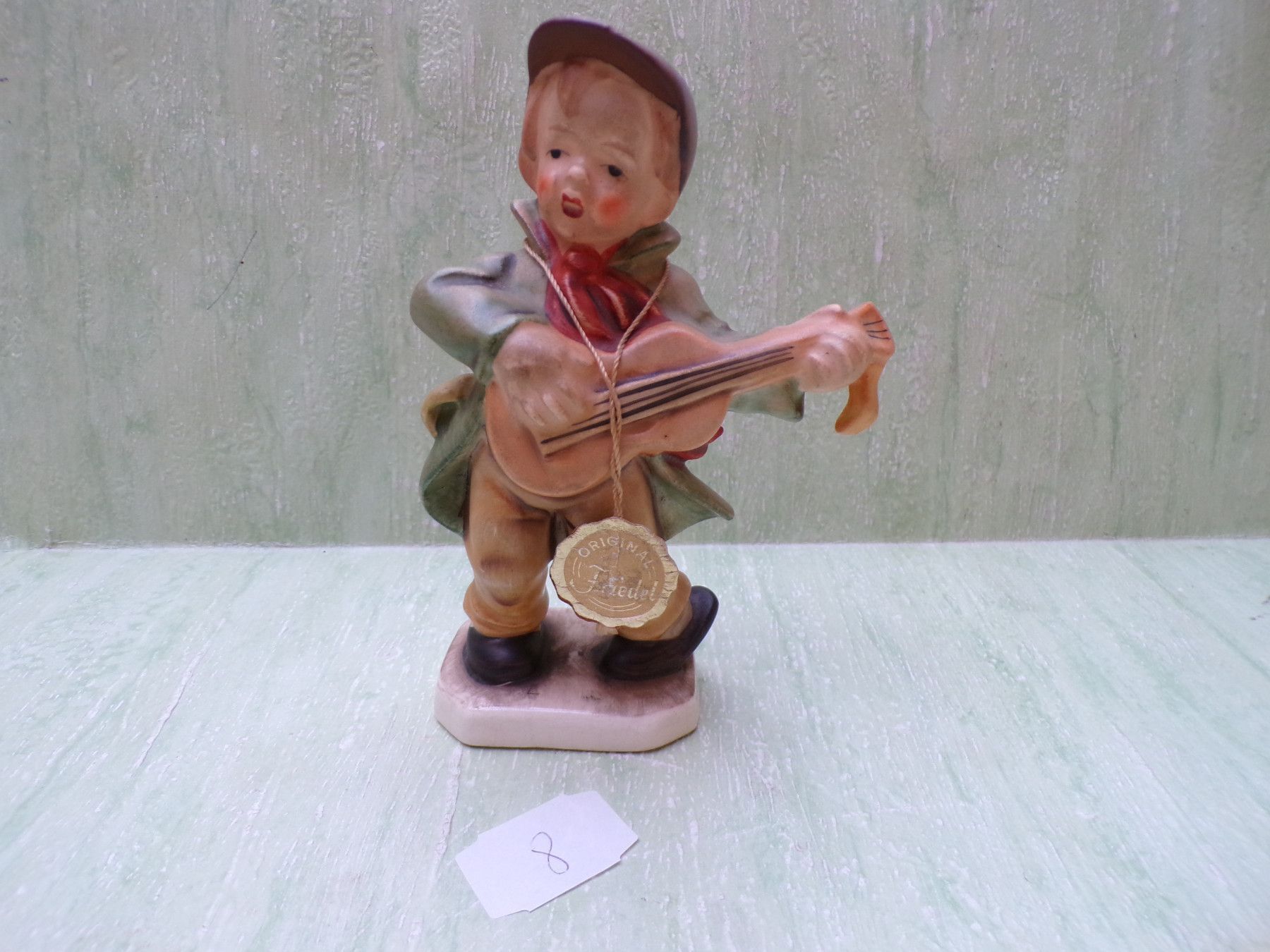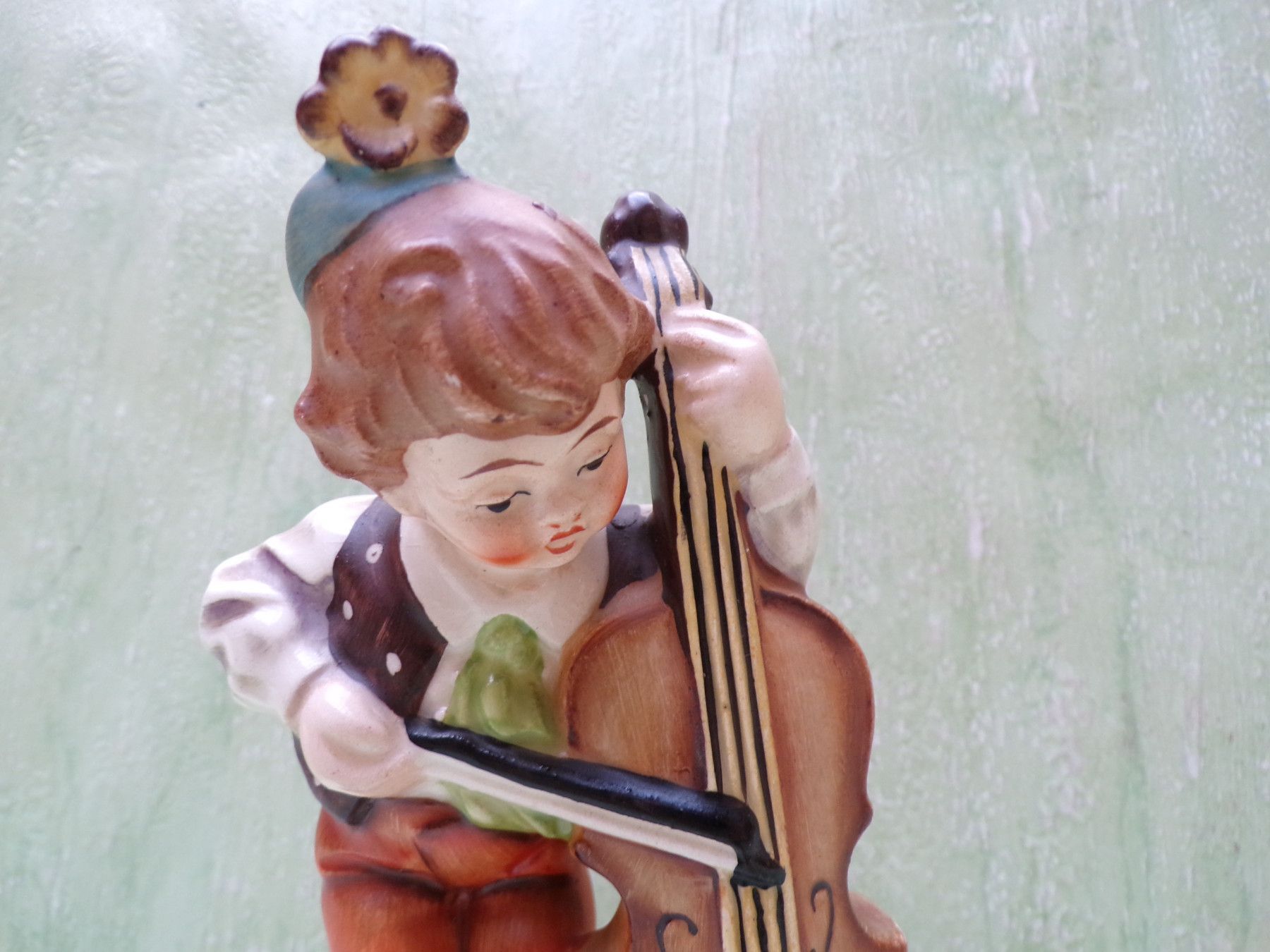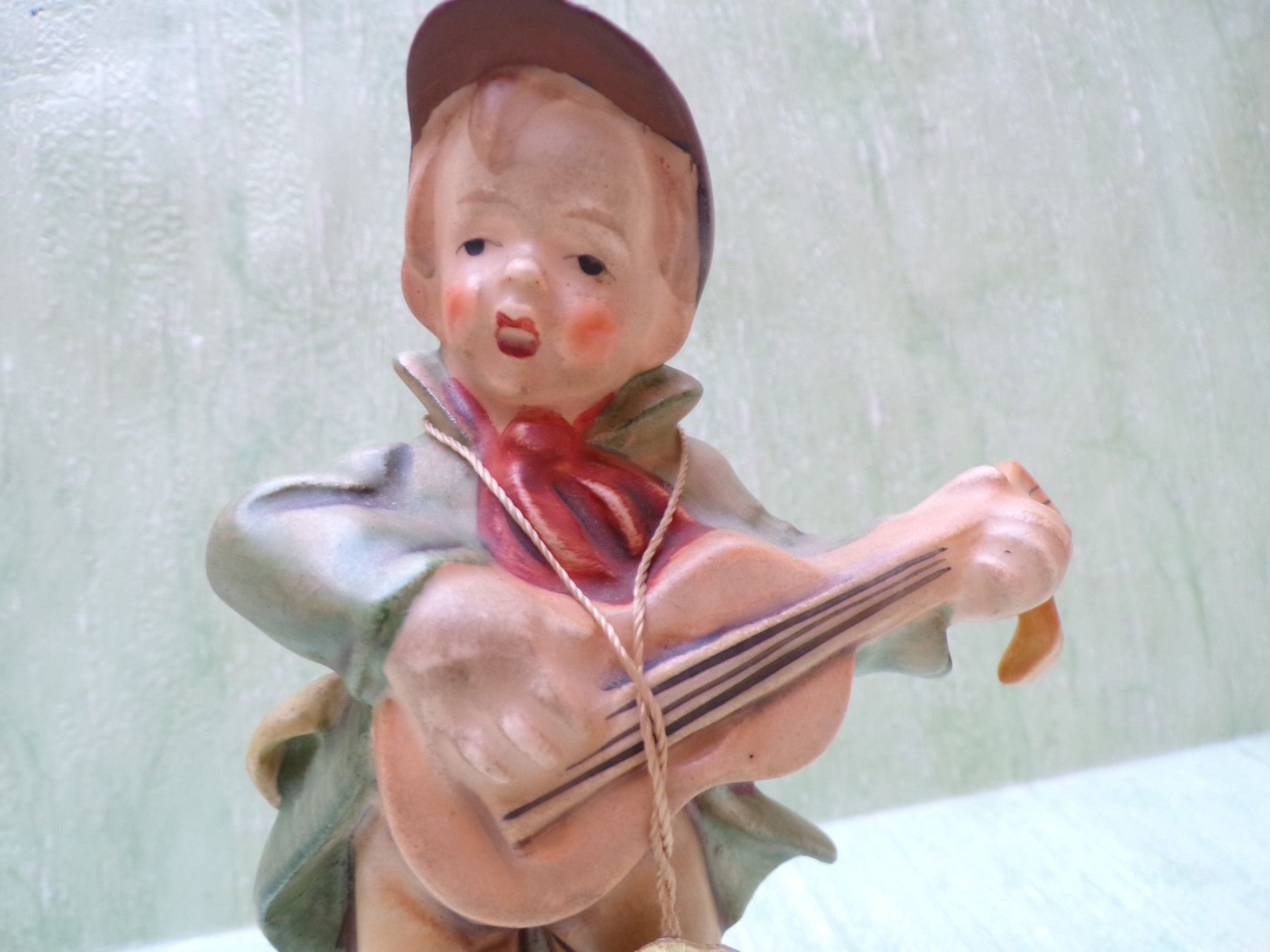 Alte Retro Porzellan Hand bemalte Geflügel Engel Figur mit Gitarre Statue Skulptur