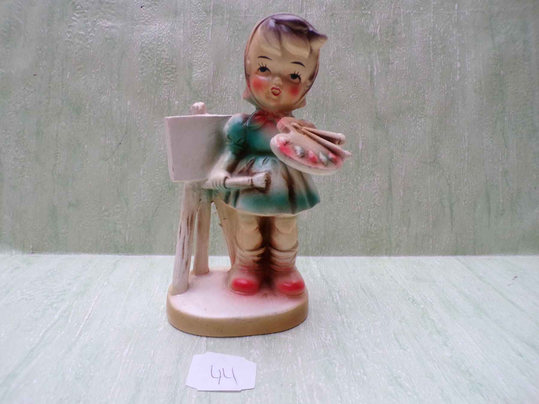44: Malerin Sockel mit Crauele ca 17cm, 45: mit Hund ca 15cm und 46: Schnee schippen ca 16,5cm