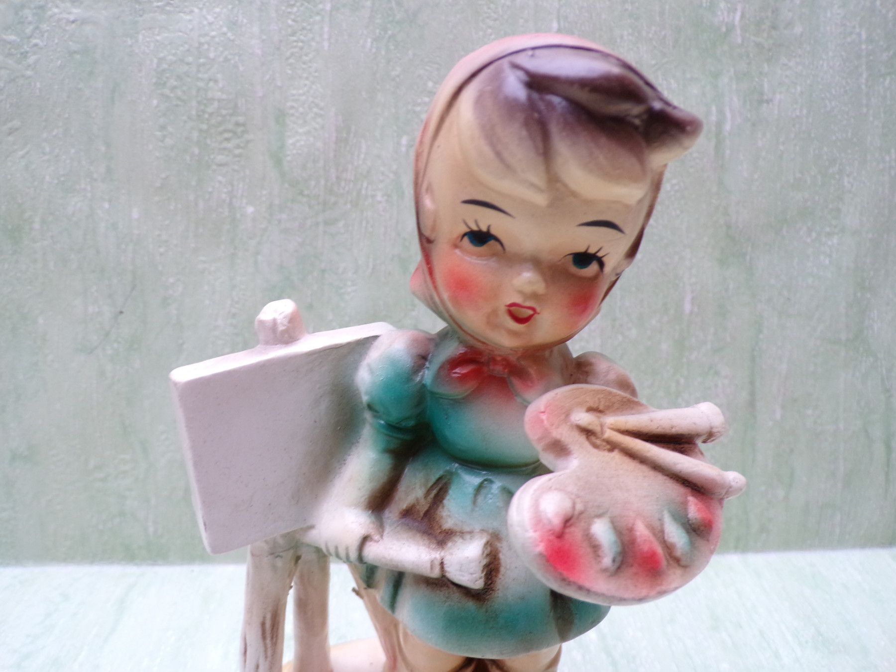 44: Malerin Sockel mit Crauele ca 17cm