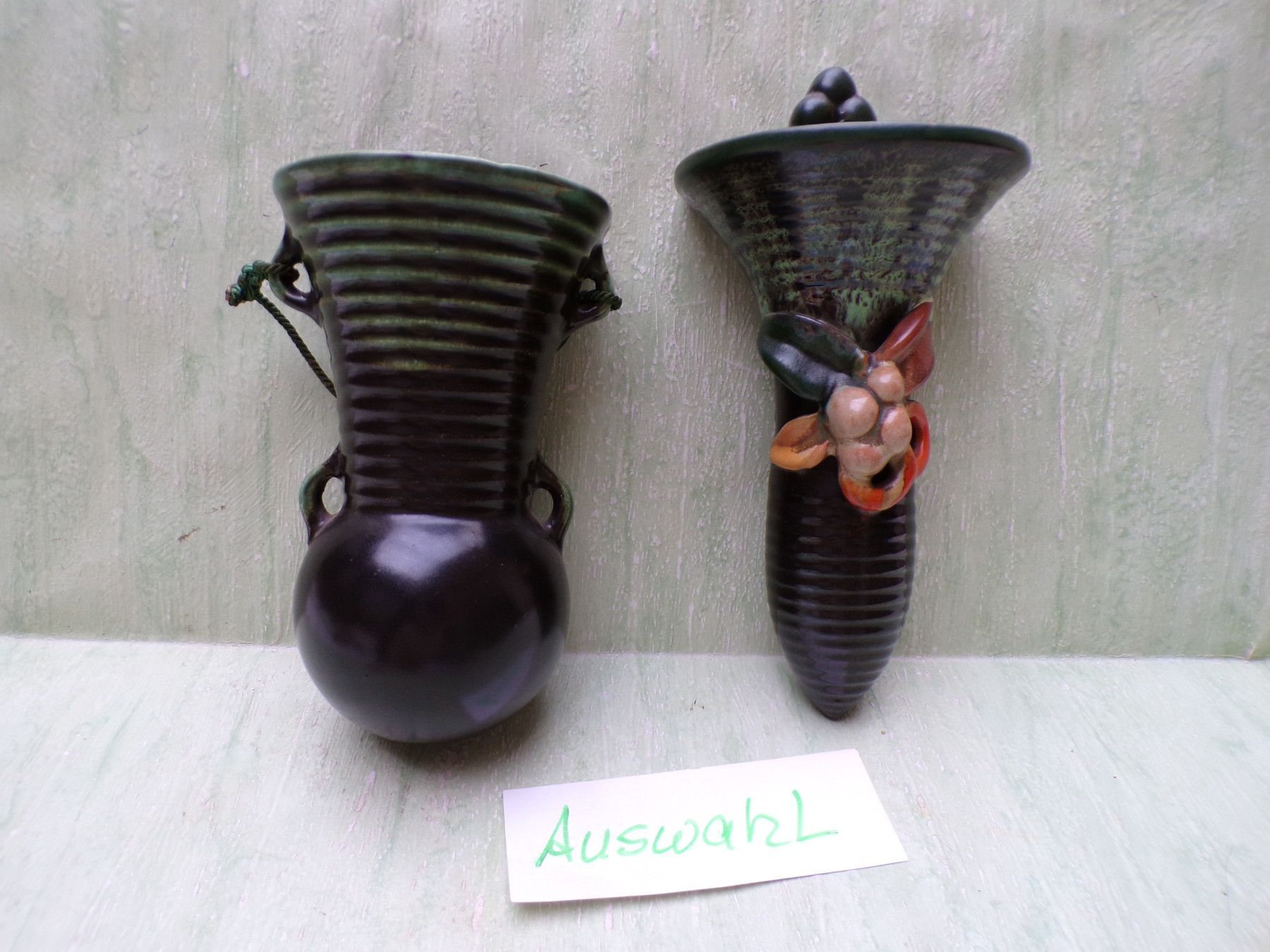 ... Erinnerungen ..... . alte Wandvasen Artikelauswahl . . Zustand : sehr gut, es sei denn , in der Artikelauswahl ist ein Mangel deklariert siehe dazu die Fotos ! . . Fotos sind Bestandteil der Beschreibung Bitte berücksichtigen Sie , daß die Farben Foto Original abweichen können - Danke !