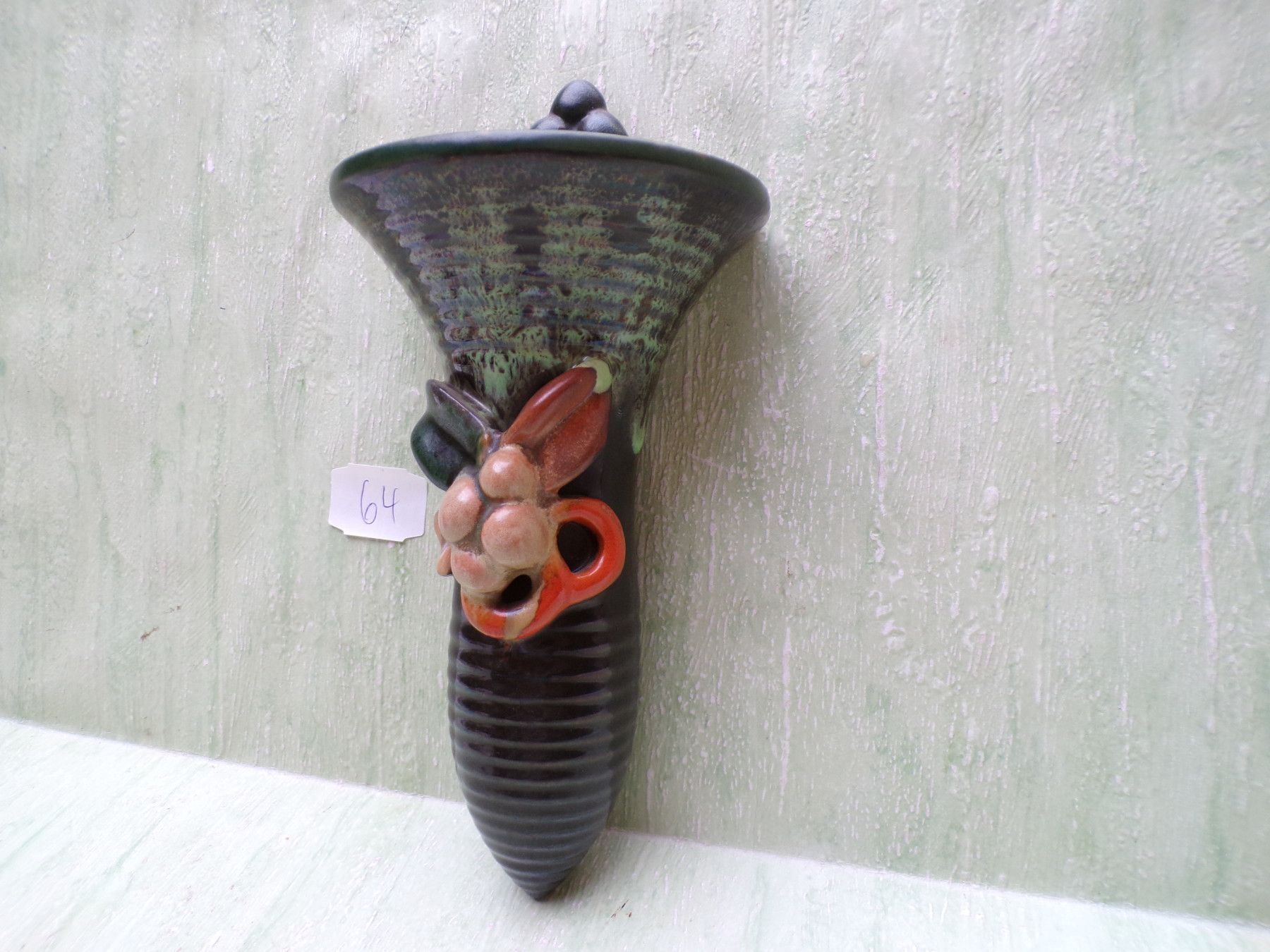 Keramik Porzellan Wandvase 50/60er Jahre orange-bunt mit Nr / ohne Nr