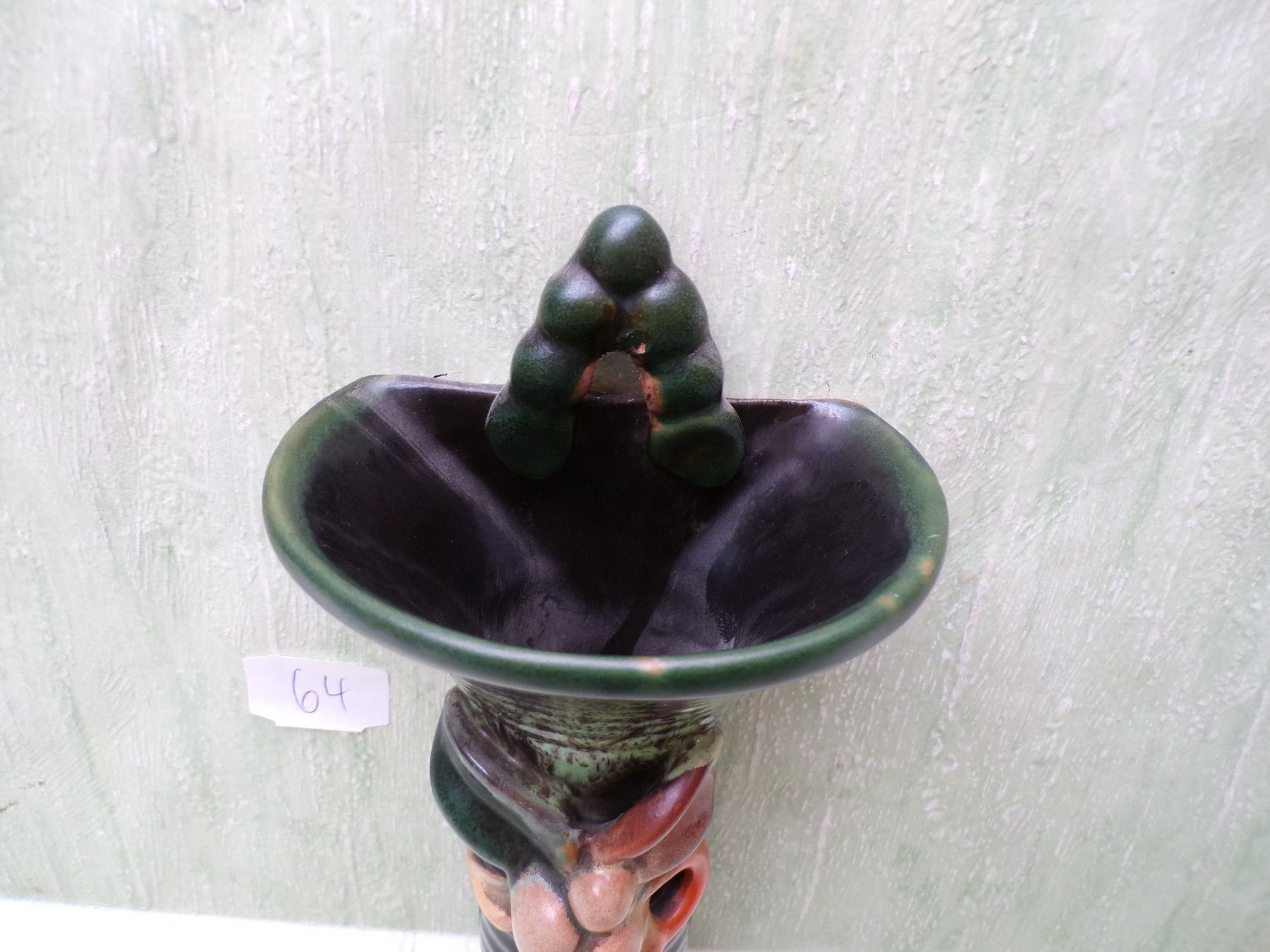 Keramik Porzellan Wandvase 50/60er Jahre Jasba grün-braun-creme gelblich