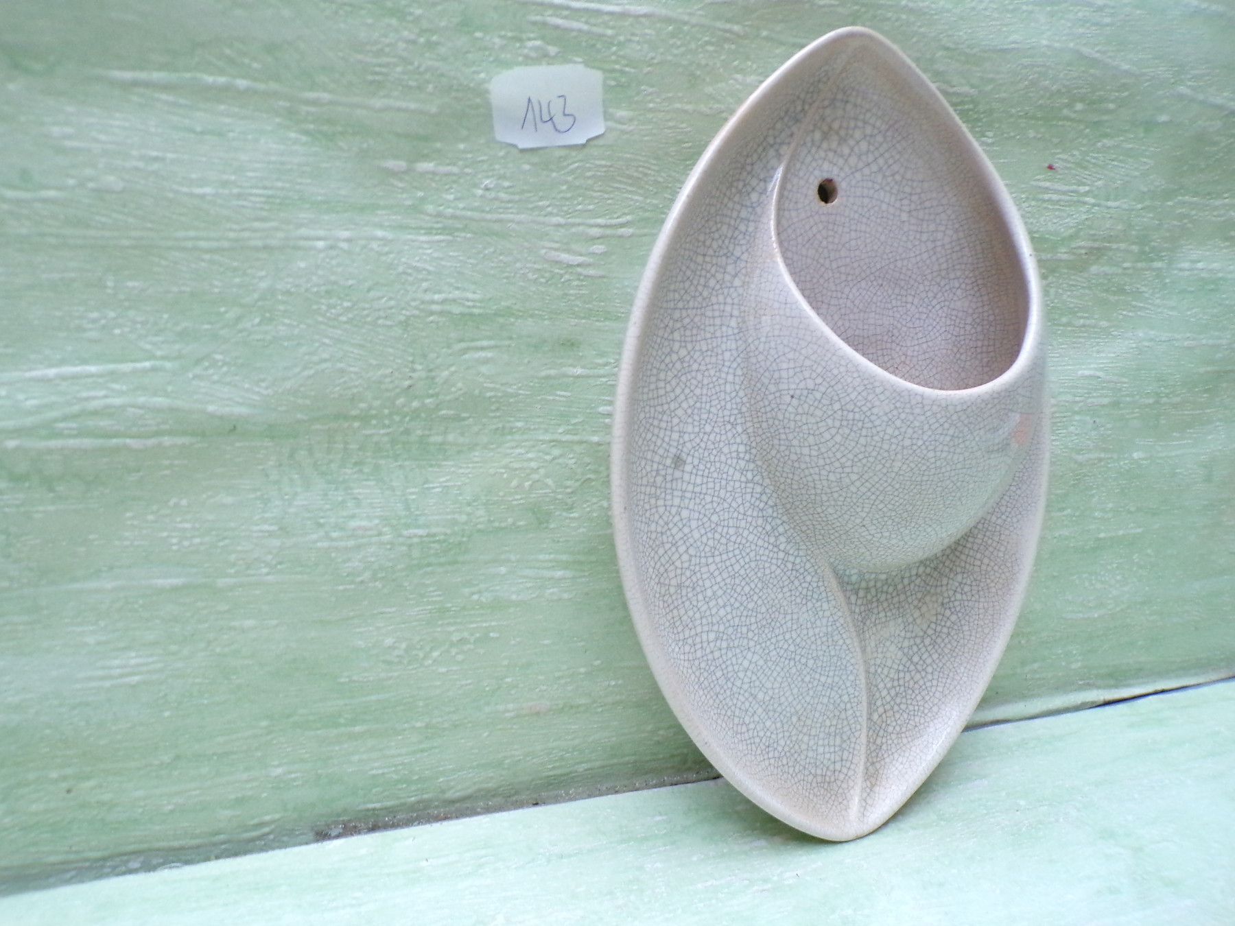 Porzellan Keramik Wandvase Craquele-Dekor West Germany creme-grau ca 24cm