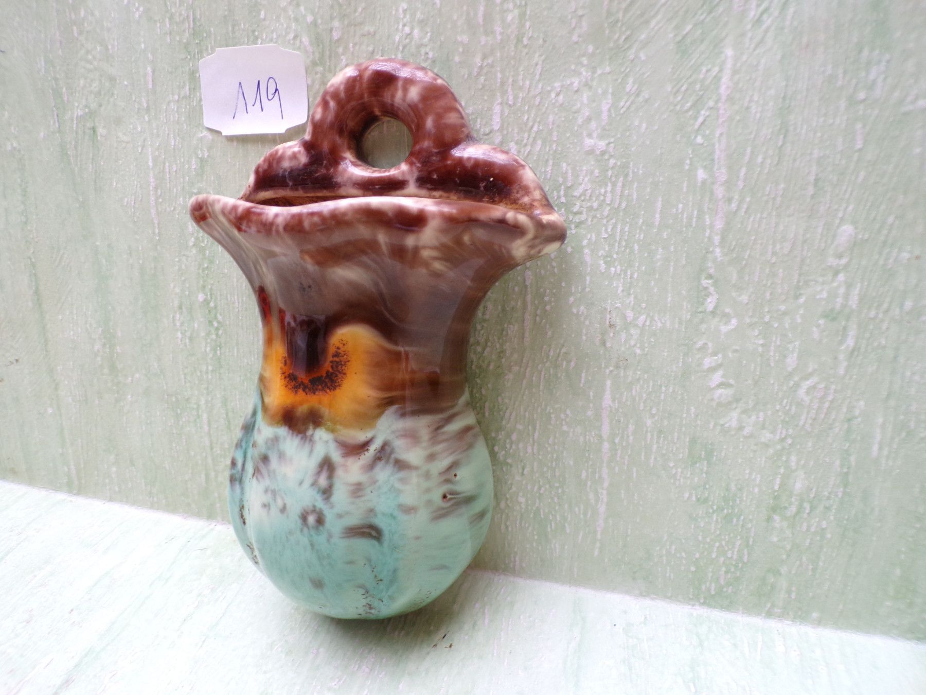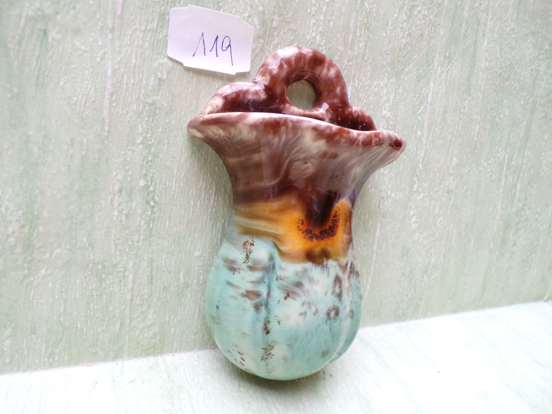 Keramik Porzellan Wandvase 50/60er Jahre orange-bunt mit Nr / ohne Nr
