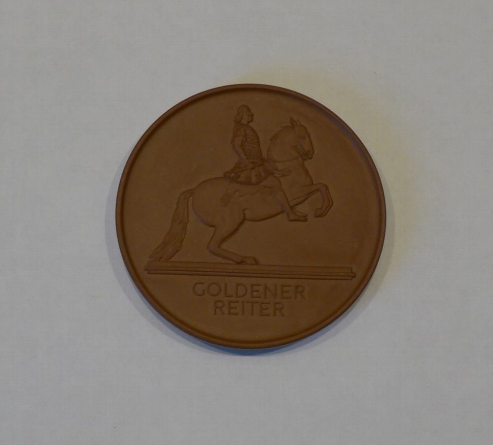 Porzellan Medaille Goldener Reiter Meissen DDR