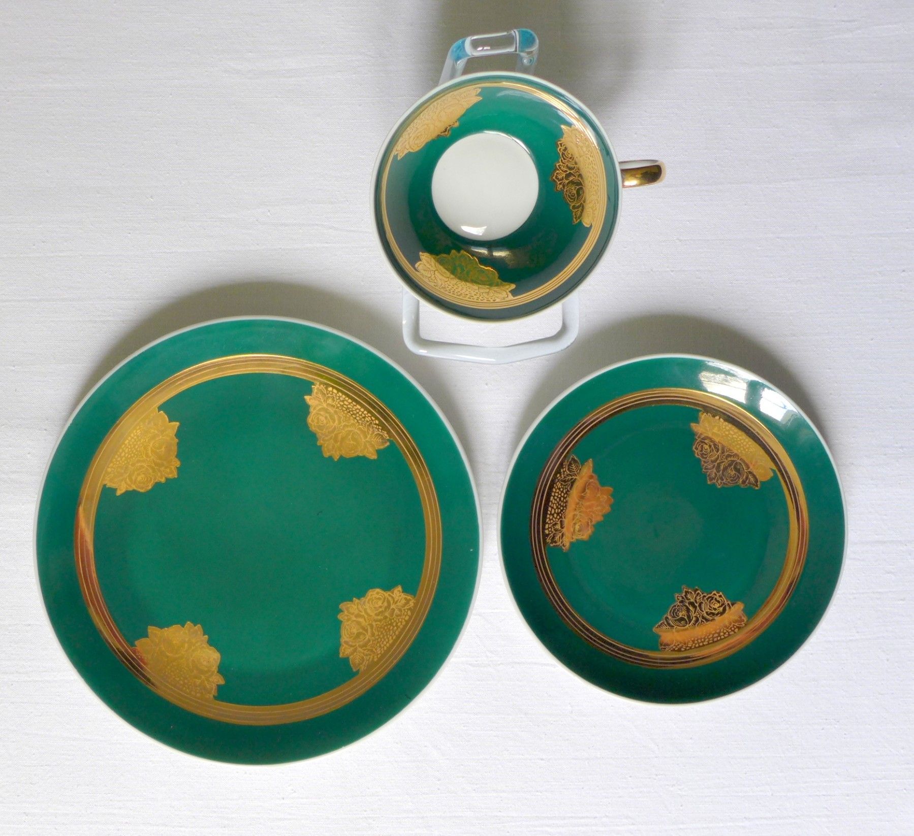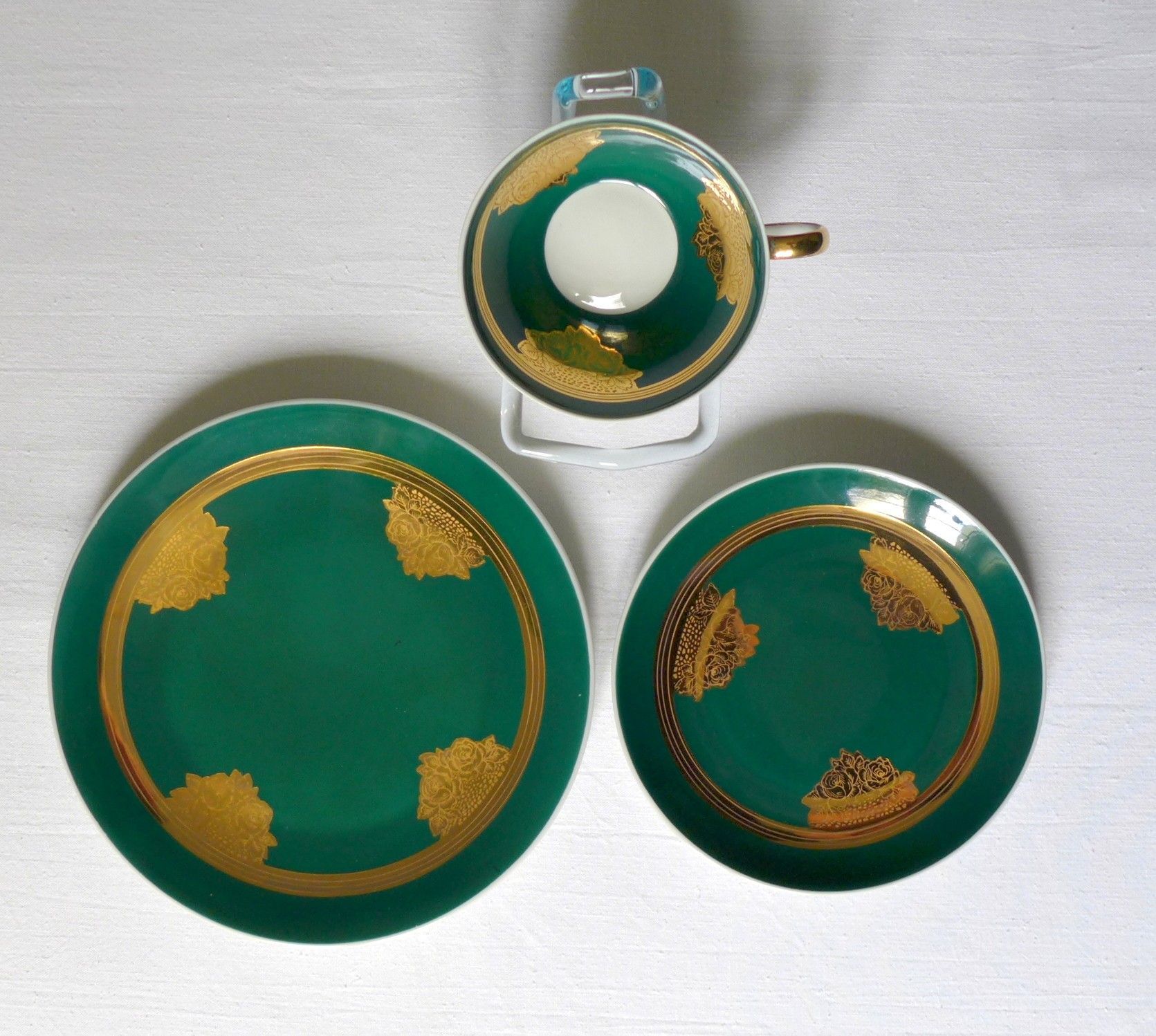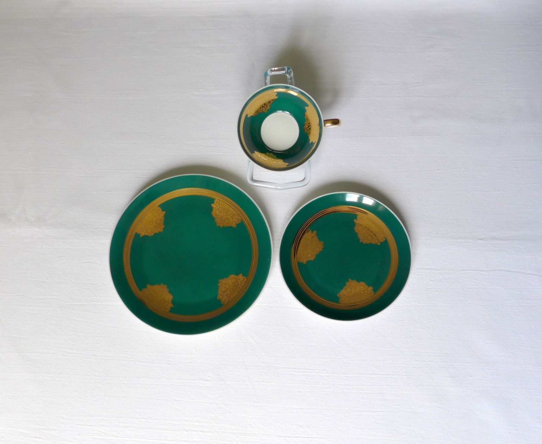 Porzellan Sammeltasse Unterweißbach DDR Tasse grün gold