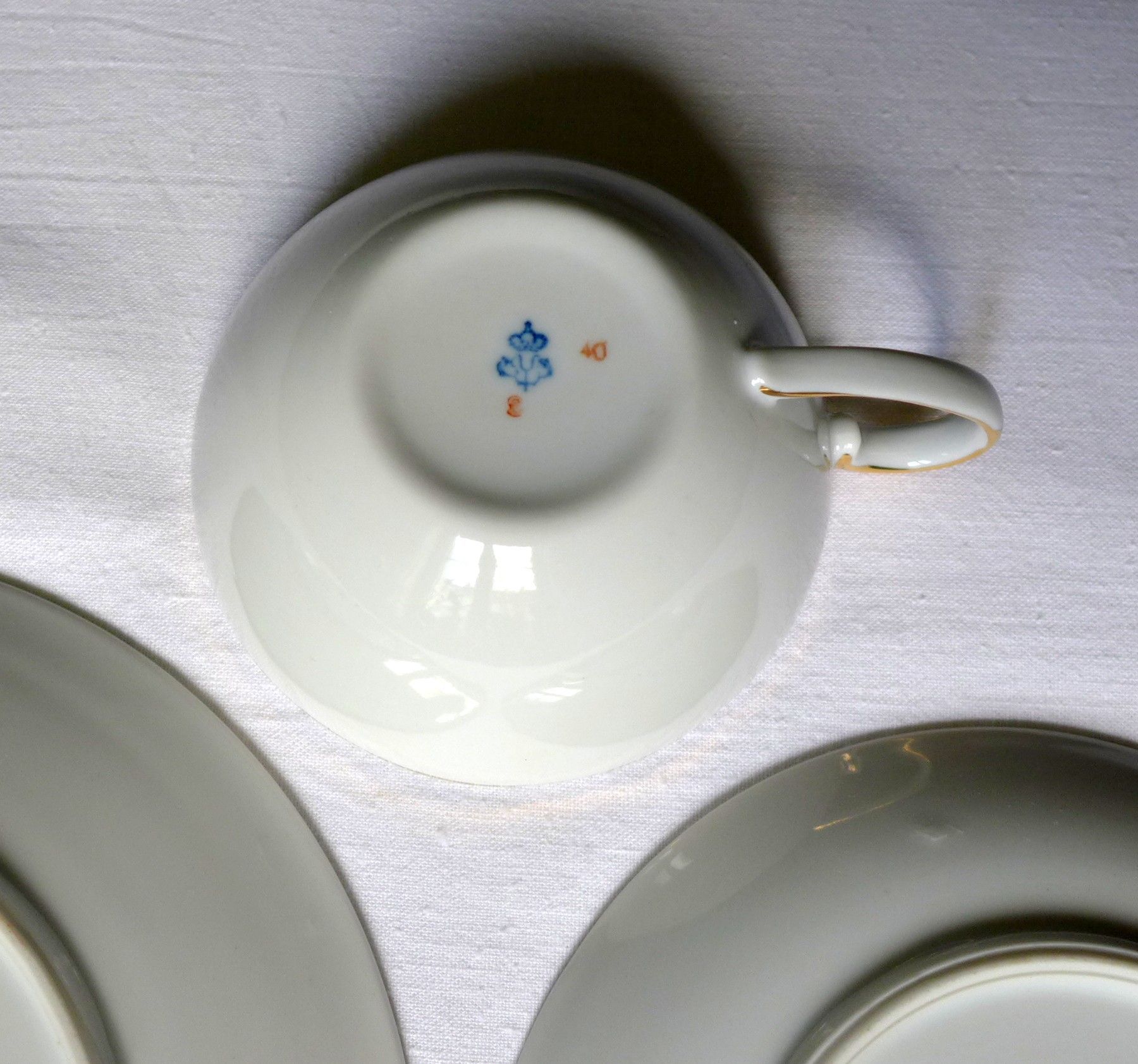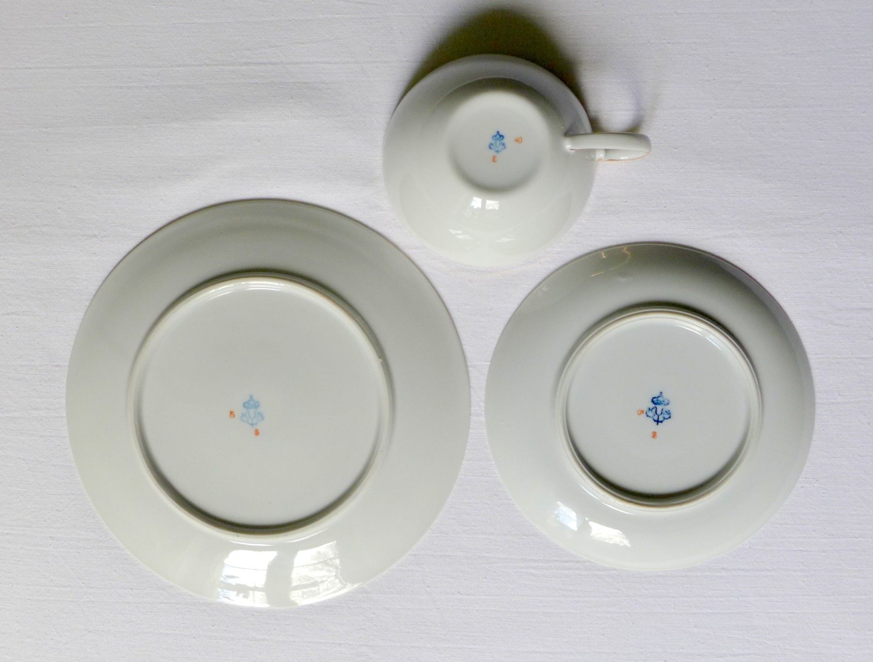 gebrauchter Zustand mit nur minimalen Gebrauchs - und Lagerspuren siehe Fotos , 3 Teile : Tasse , Untertasse , Teller , Höhe der Tasse ca. 5 cm , Durchmesser großer Teller ca. 23 cm , gemarkt Unterweißbach , keine Chips zu erkennen , Lichtspiegelungen , Schattenbildung , Farbabweichungen können beim