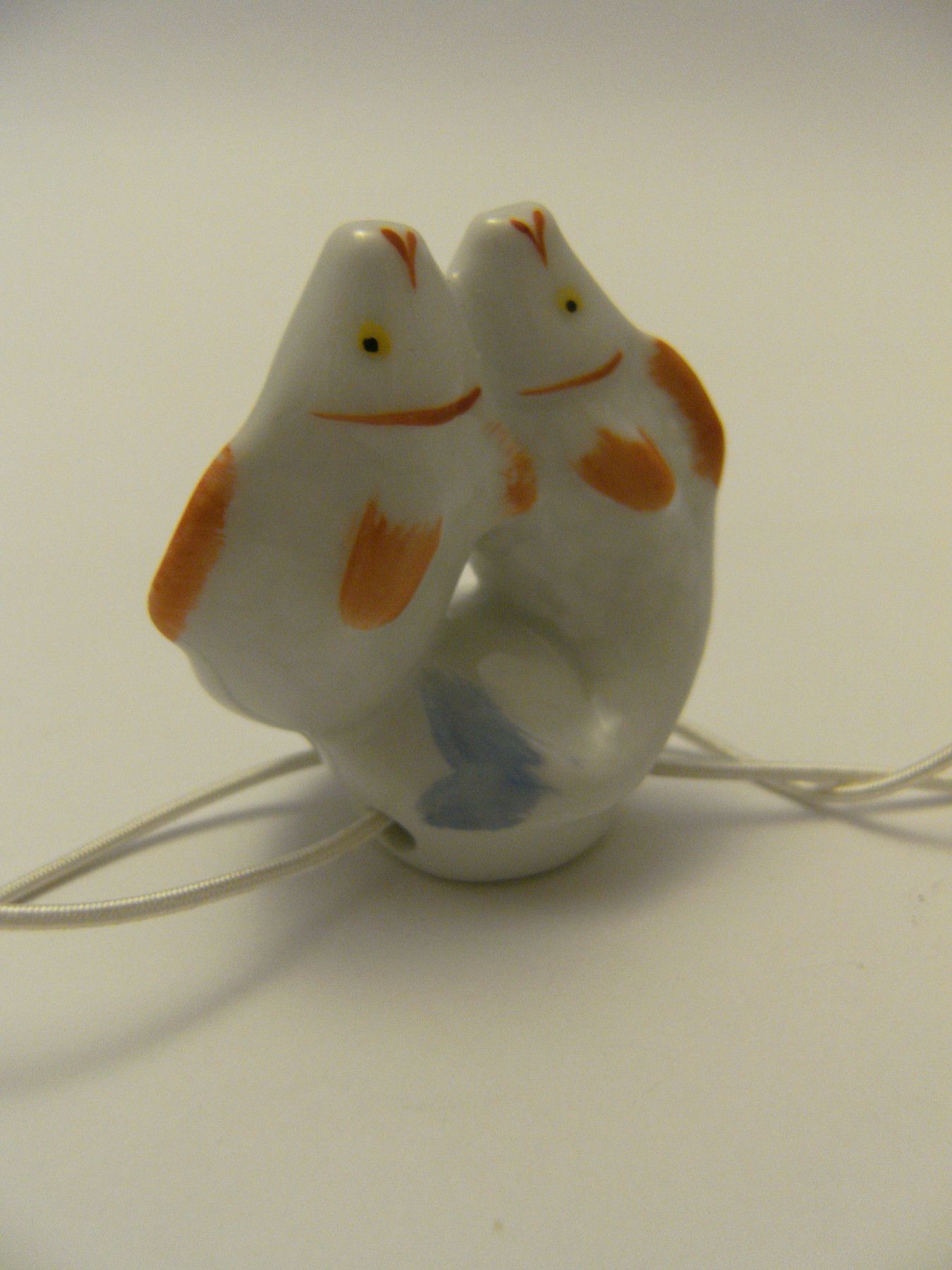 Porzellan Tropfenfänger Fische, handbemalt für Kaffee- oder Teekannen, Figur Tiere