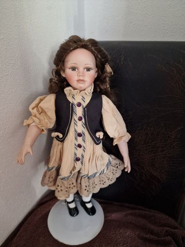 Sehr schöne Porzellanpuppe. Sie st in sehr gutem Zustand und ca 60 cm groß. Für weitere Fragen stehe ich gerne zur Verfügung. Beachtet auch meine anderen Auktionen um Porto zu sparen. Hierbei handelt es sich um eine Privatauktion, daher keine Gewährleistung, kein Umtausch und keine Rücknahme möglich