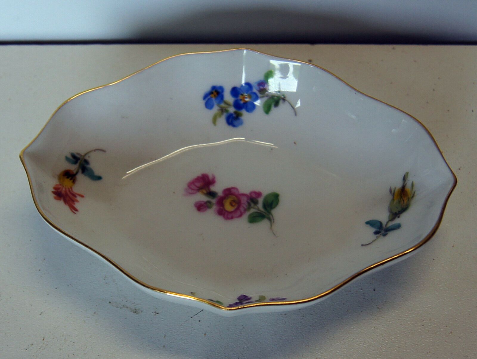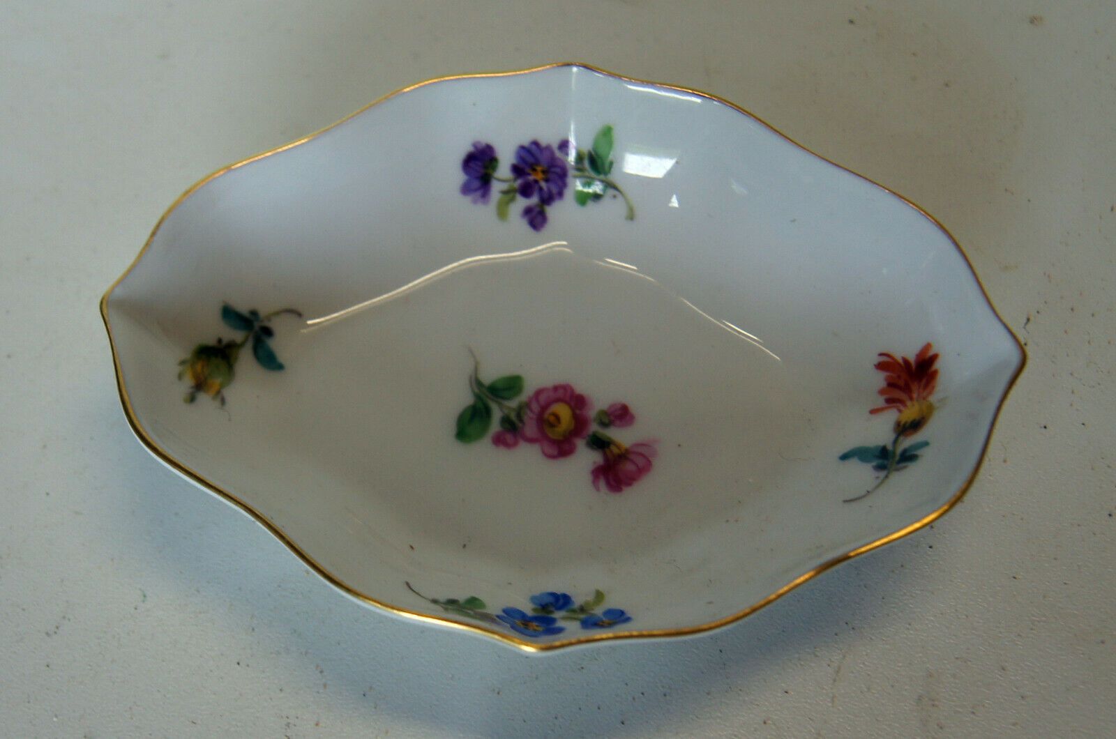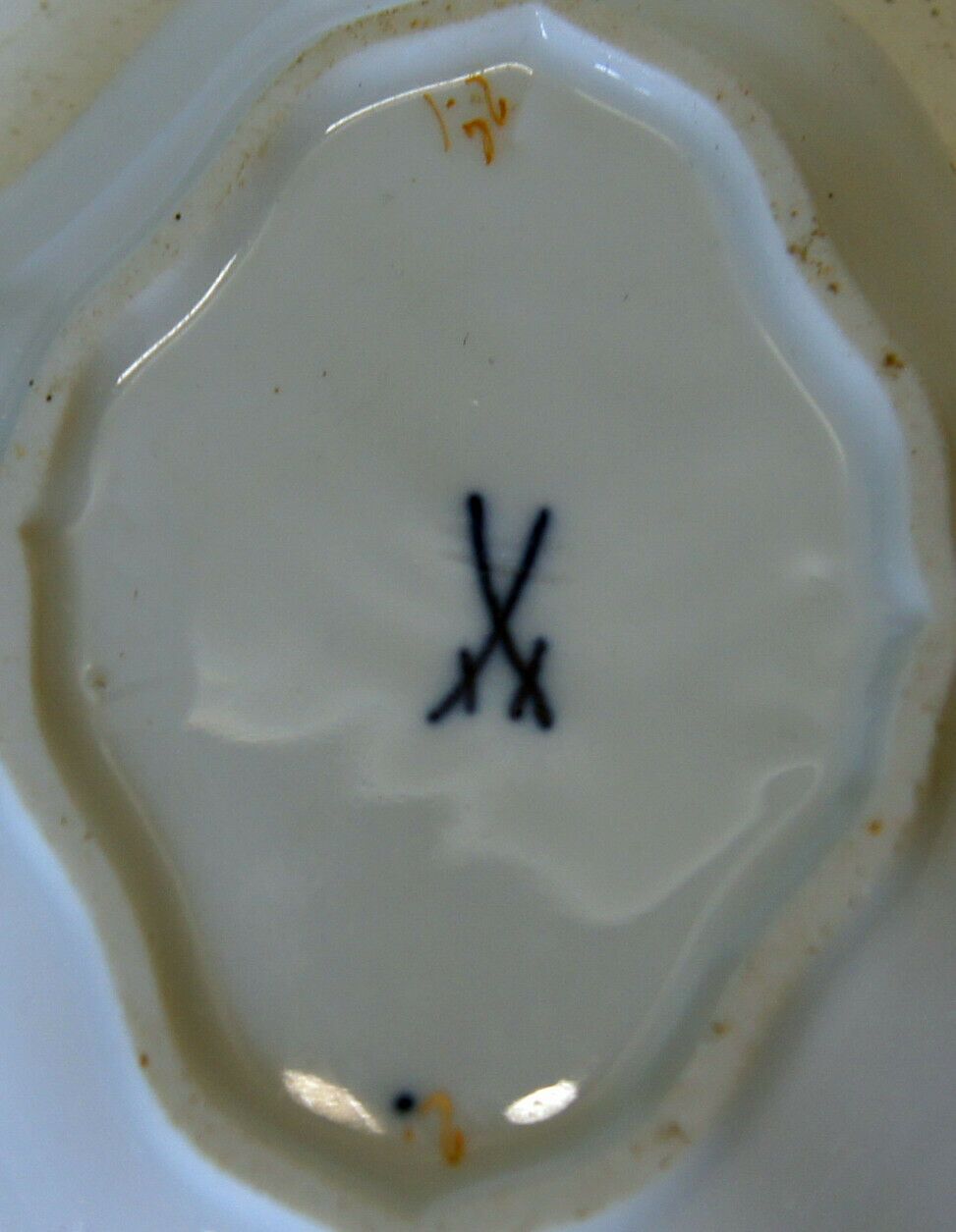 Porzellan-Schale um 1970. Marke: Meissen I.Wahl (siehe Foto). Maße: L 11, B 8 cm. Gute Erhaltung. Antikes am Deich - Inh: Oliver Kipp-Trense G M T Sprache erkennen Afrikaans Albanisch Arabisch Armenisch Aserbaidschanisch Baskisch Bengalisch Bosnisch Bulgarisch Burmesisch Cebuano Chichewa Chinesisch
