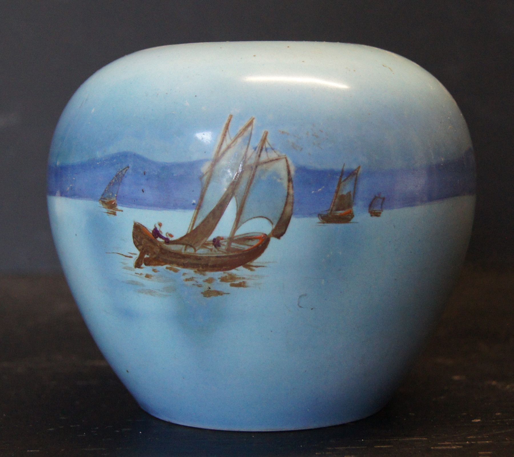 Porzellan-Vase um 1900 (Jugendstil) . Marke: Shelly England (siehe Foto). Handmalerei. Oberer Rand mit Fehlern. Maße: H 11, Ø 15 cm. Antikes am Deich - Inh: Oliver Kipp-Trense