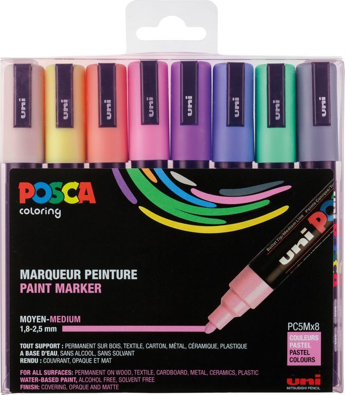 Posca Marker-Set PC-5M mittelfeine Rundspitze - 8er Etui Pastellfarben