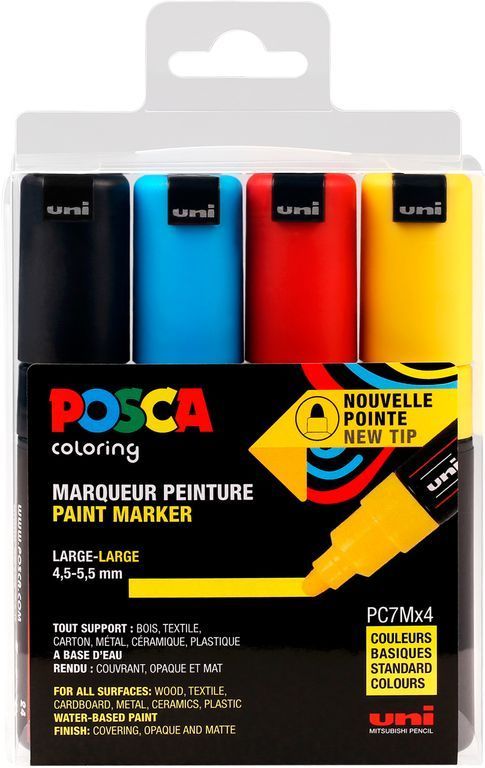 Posca Marker-Set PC-7M breite Rundspitze - 4er Etui Grundfarben