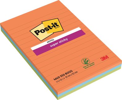 • Post-it® SuperSticky 46453SSA Haftnotizen Ultrafarben 102 x 152 mm 3 x 45 Blatt linie
