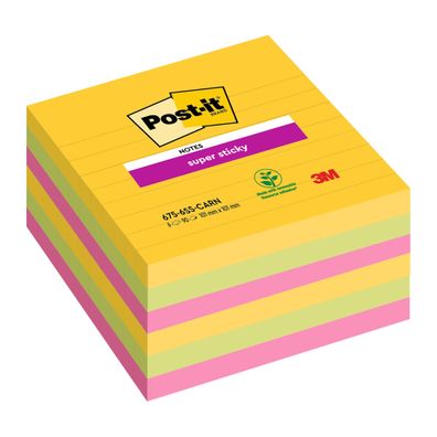 • Post-it® SuperSticky 675-S6R Haftnotiz Super Sticky Notes - 101 x 101 mm, liniert, 6x