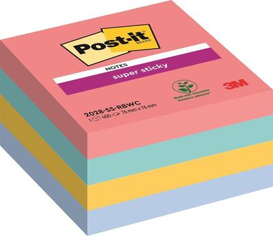 • Post-it® SuperSticky 2028-SS-RBWC Haftnotiz Super Sticky Würfel - 76 x 76 mm, 440 Bla