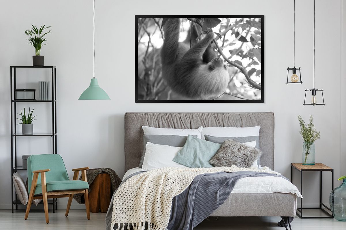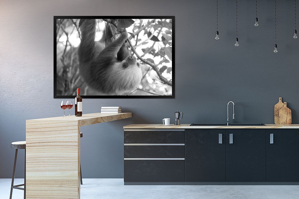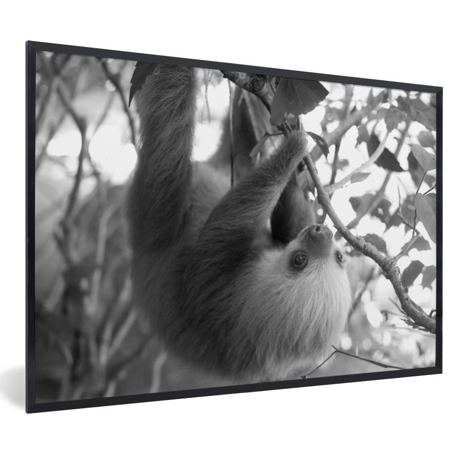 Poster - 120x80 cm - Baby-Faultier im Regenwald von Costa Rica in schwarz und