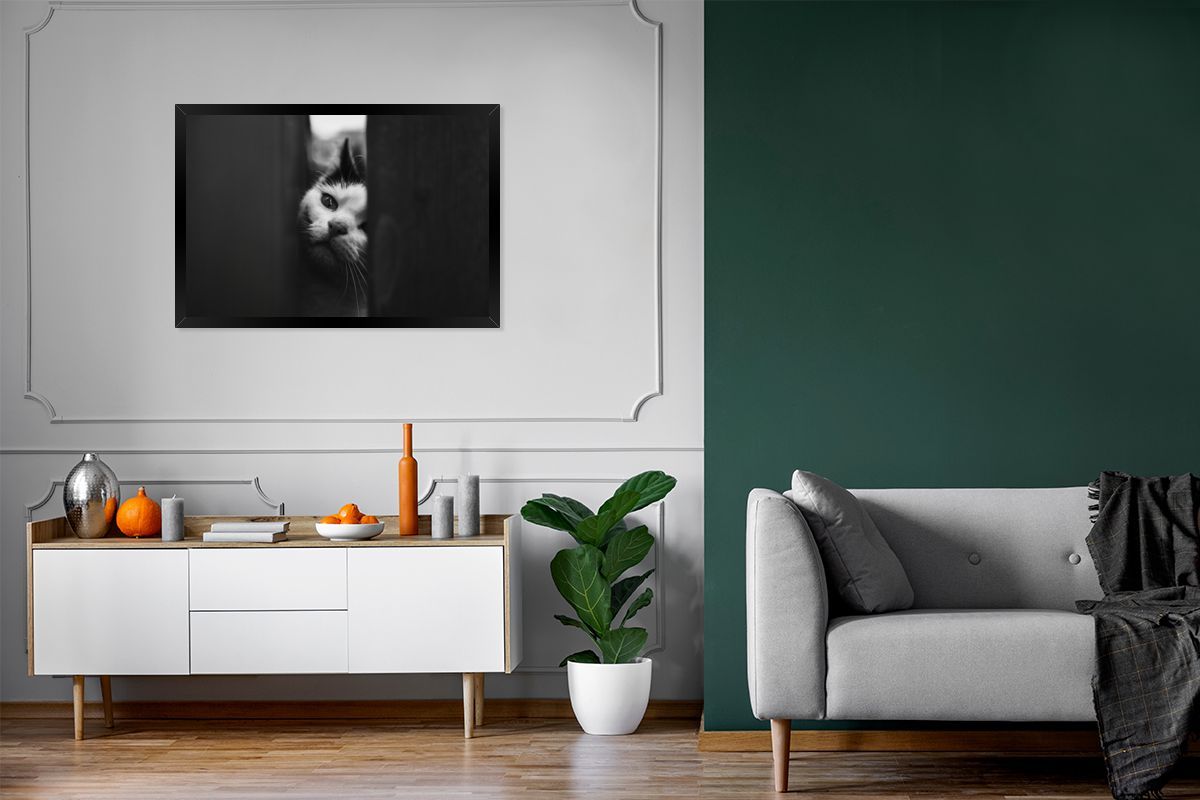 Poster - 120x80 cm - Tierprofil Spionage Katze in schwarz und weiß