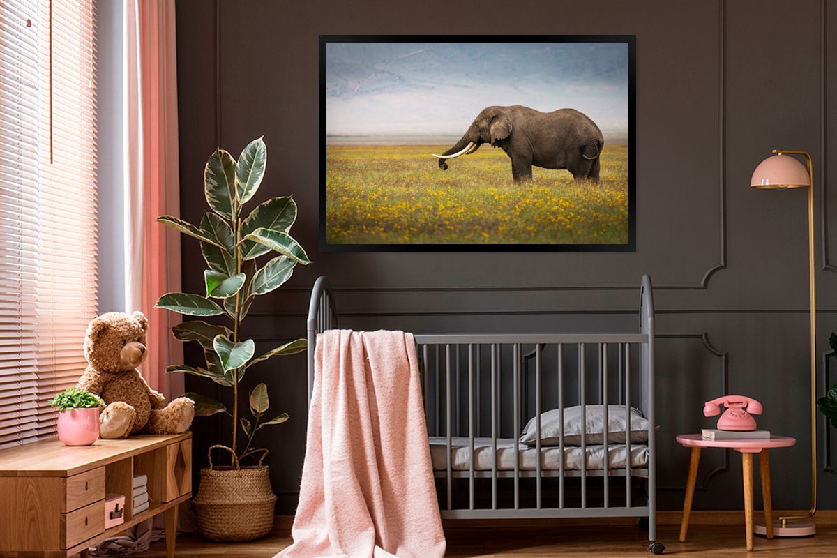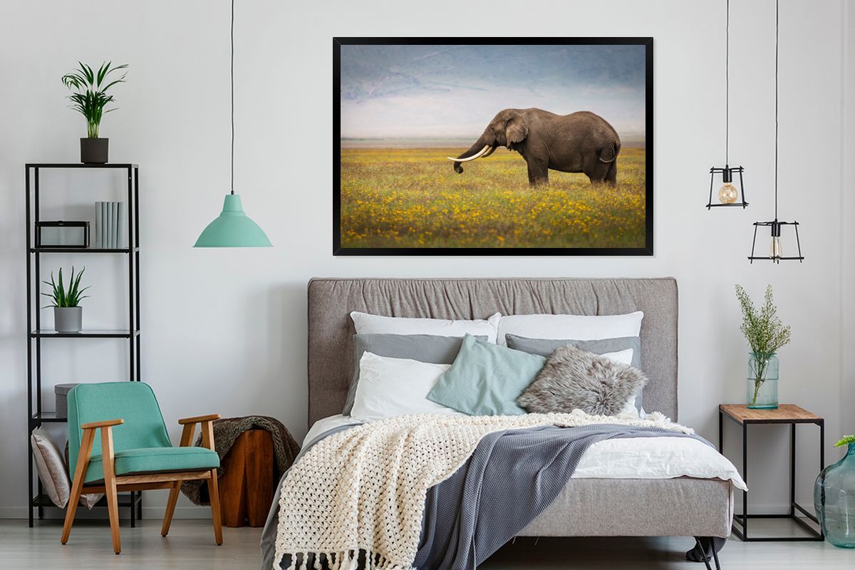 Poster - 120x80 cm - Weidender Elefant in der Natur Afrikas (Gr. 120x80 cm)