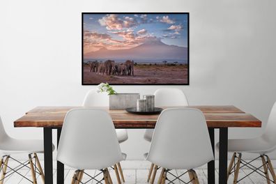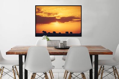 • Poster - 120x80 cm - Elefantenherde bei Sonnenuntergang (Gr. 120x80 cm)