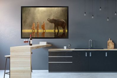 • Poster - 120x80 cm - Elefant mit Mönchen (Gr. 120x80 cm)