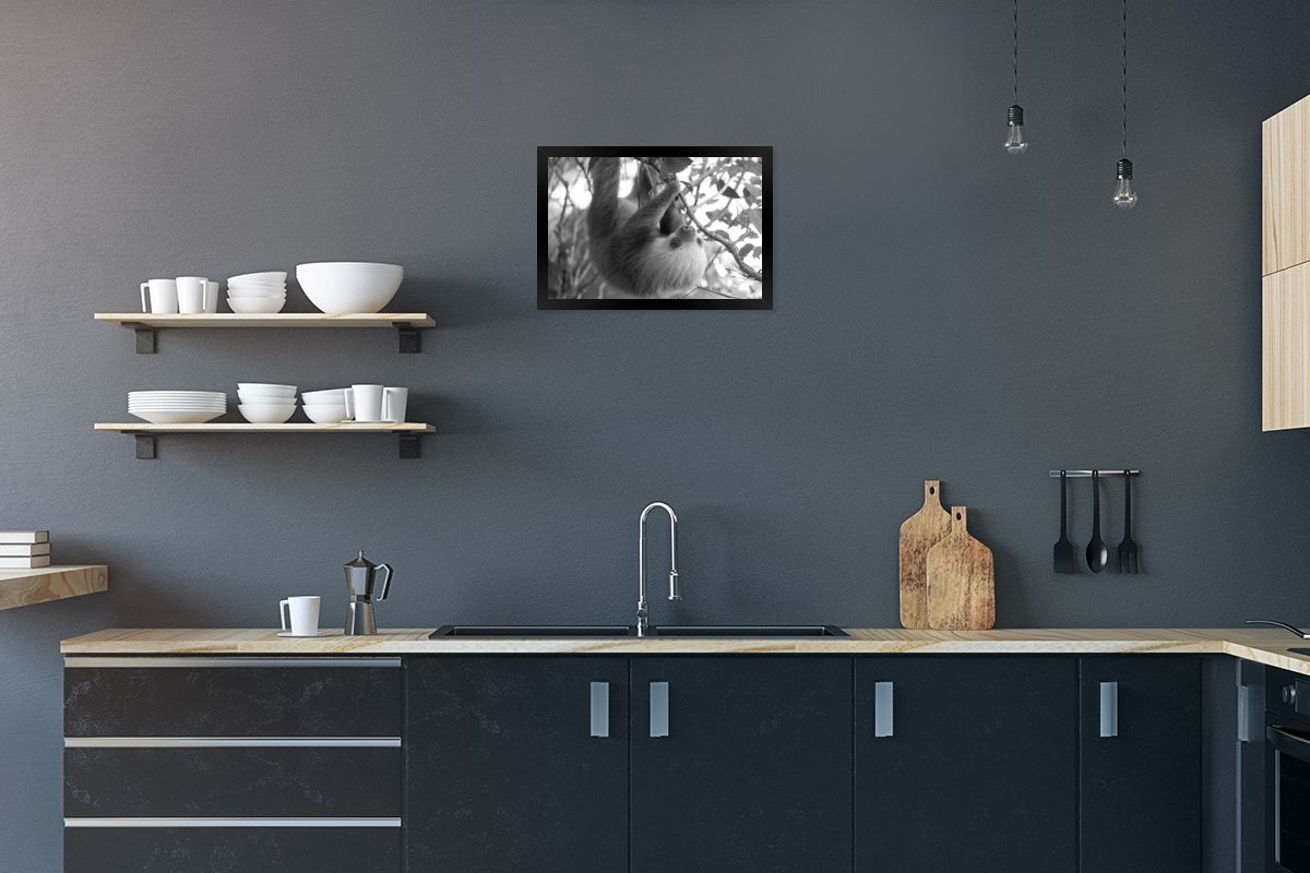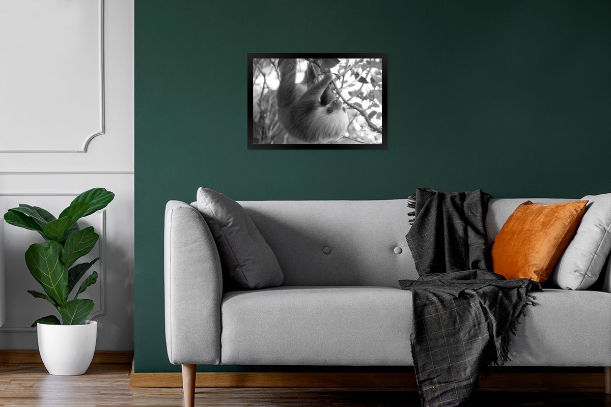 Poster - 30x20 cm - Baby-Faultier im Regenwald von Costa Rica in schwarz und