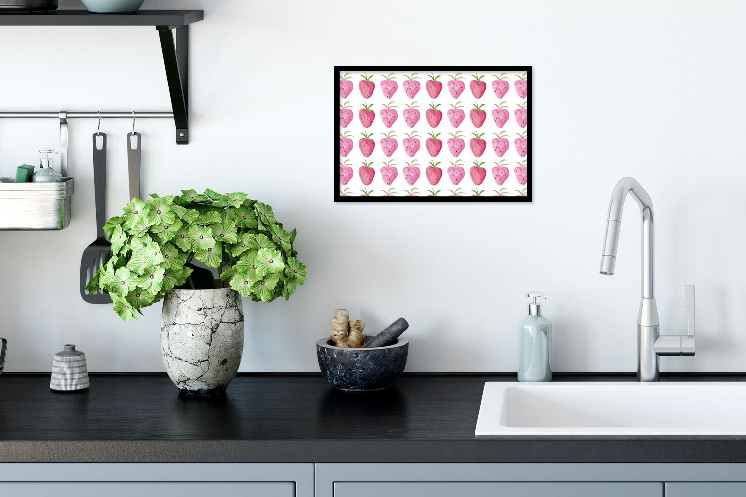 Poster - 30x20 cm - Erdbeere - Aquarell - Entwurf