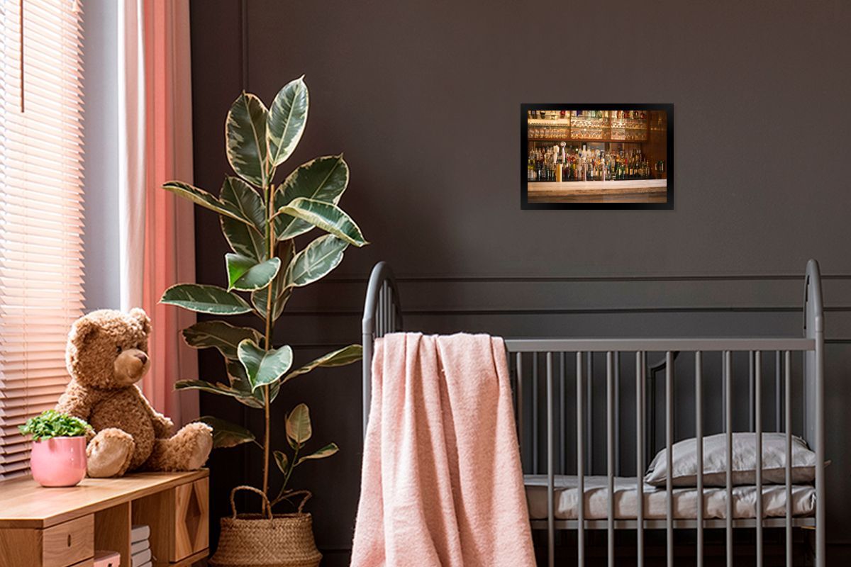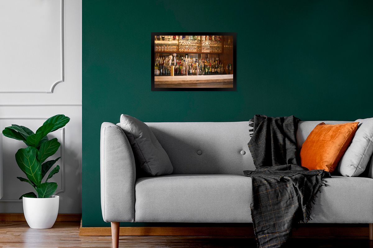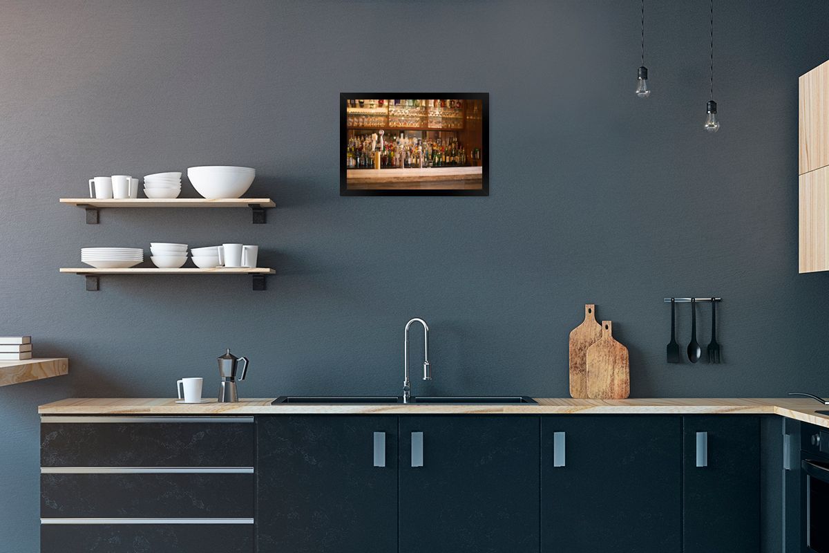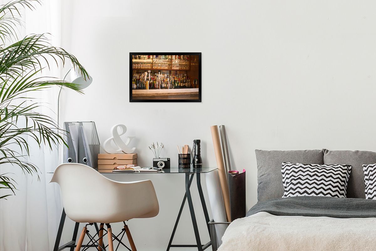 Poster - 30x20 cm - Schnapsflaschen und Gläser auf einer Bar