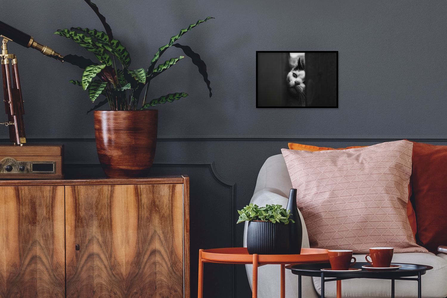 Poster - 30x20 cm - Tierprofil Spionage Katze in schwarz und weiß