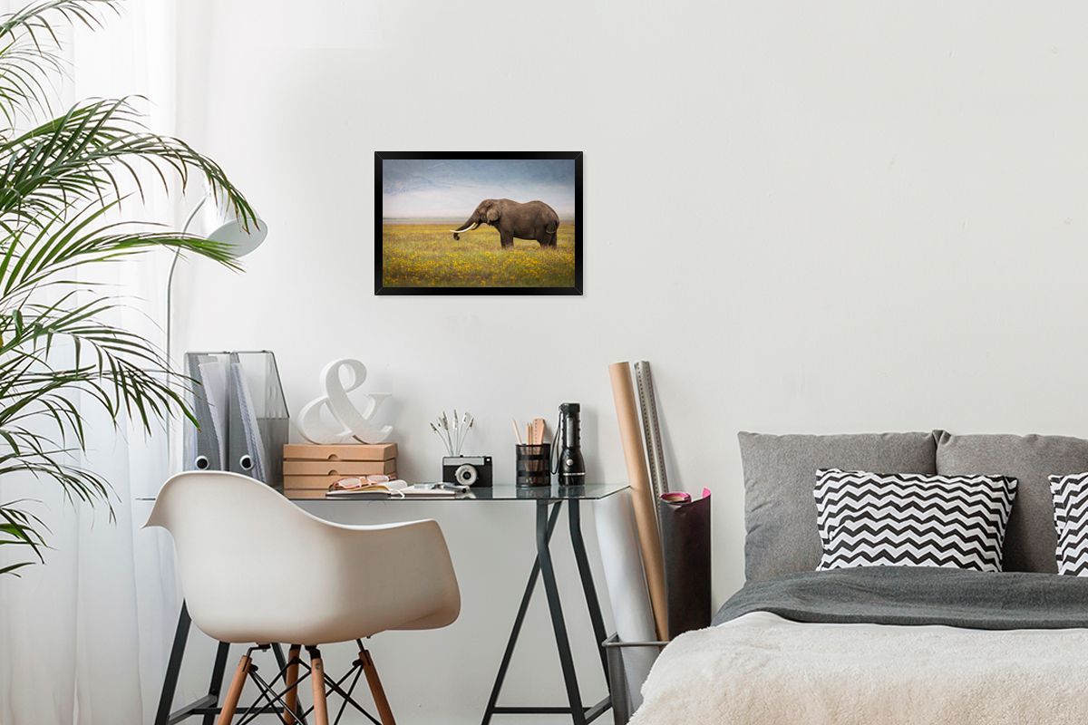 Poster - 30x20 cm - Weidender Elefant in der Natur Afrikas