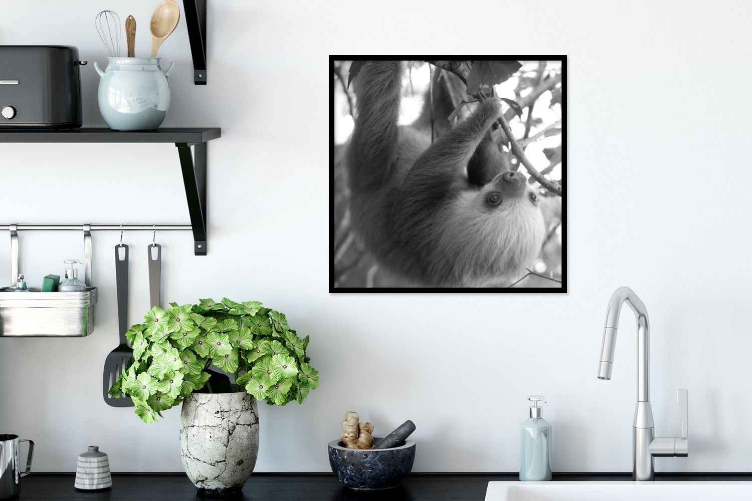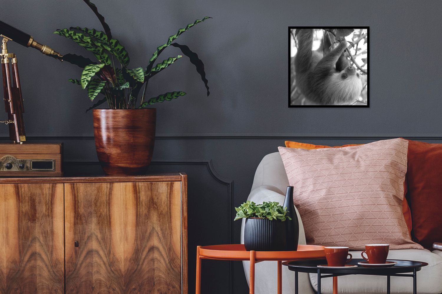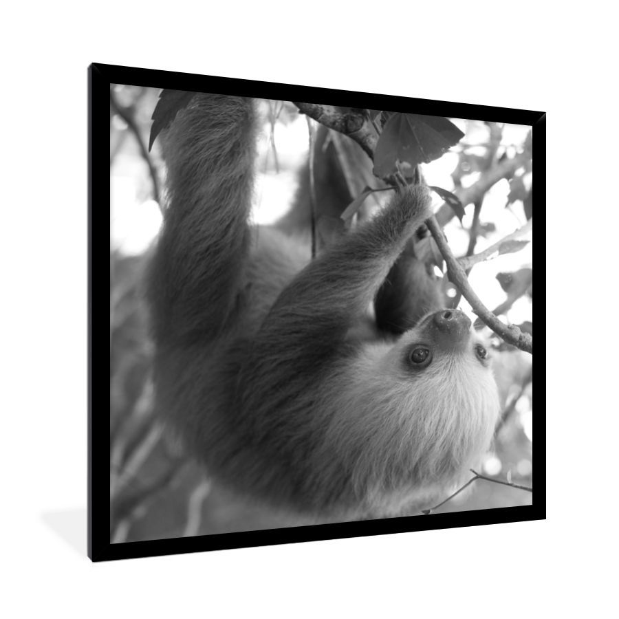 Poster - 40x40 cm - Baby-Faultier im Regenwald von Costa Rica in schwarz und
