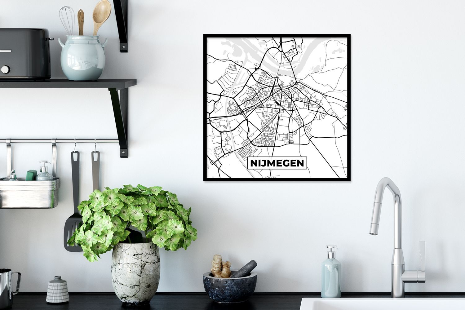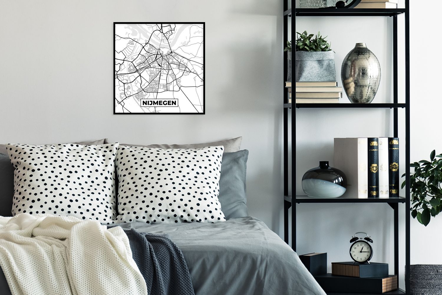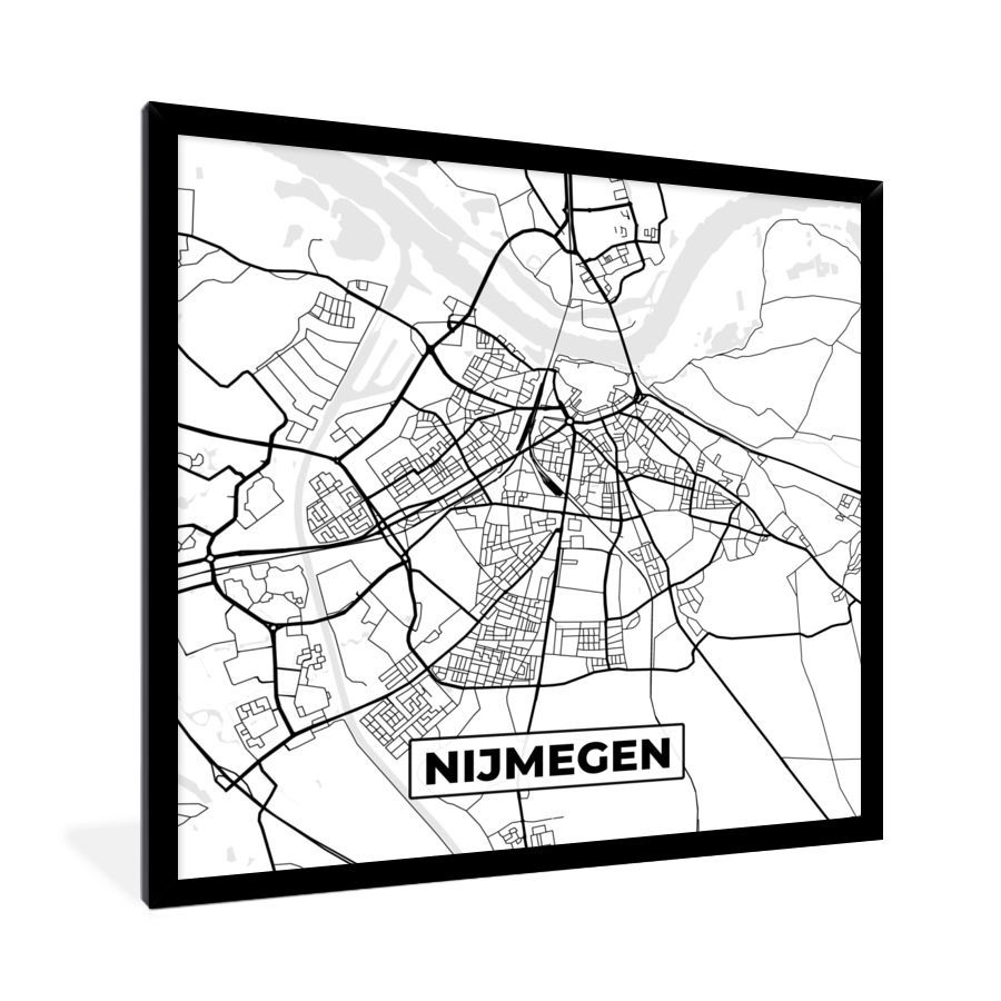 Poster - 40x40 cm - Karte - Nijmegen - Schwarz - Weiß