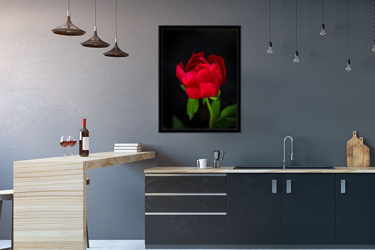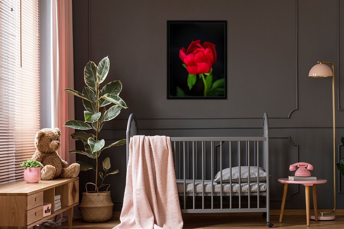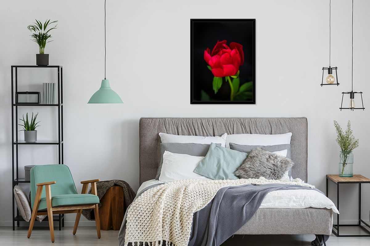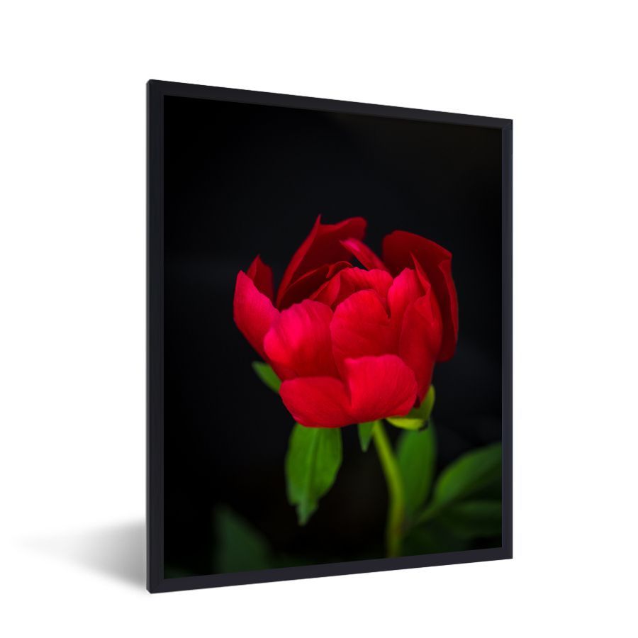 Poster - 40x50 cm - Eine Knospe einer roten Pfingstrose mit schwarzem