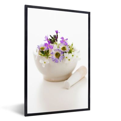 Poster - 40x50 cm - Die lila Blumen im Mörser