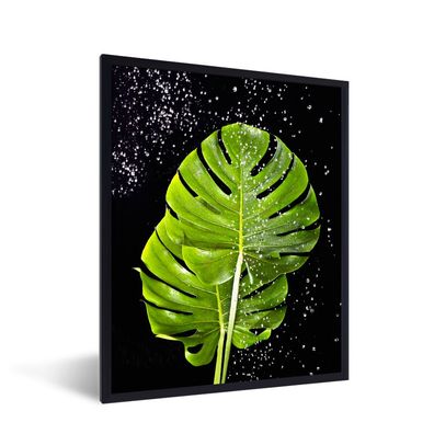 Poster - 40x50 cm - Die Palmenblätter auf einem schwarzen Hintergrund
