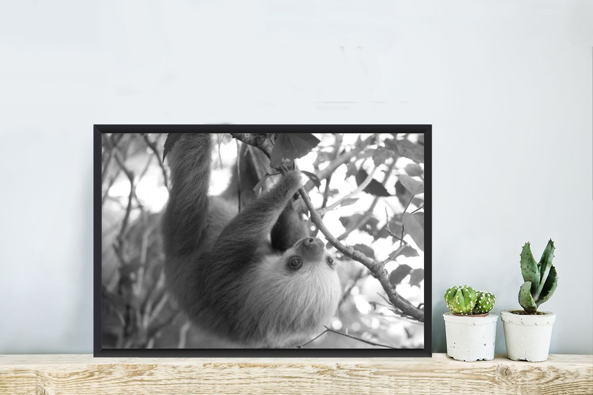 Poster - 60x40 cm - Baby-Faultier im Regenwald von Costa Rica in schwarz und weiß