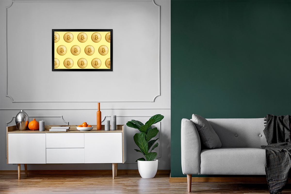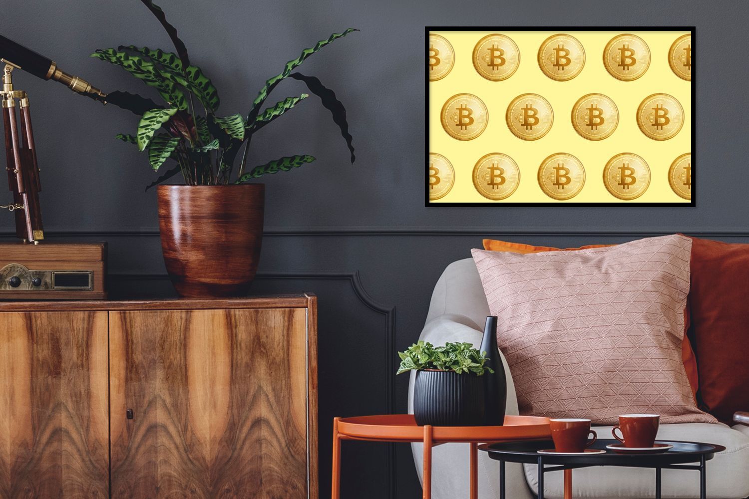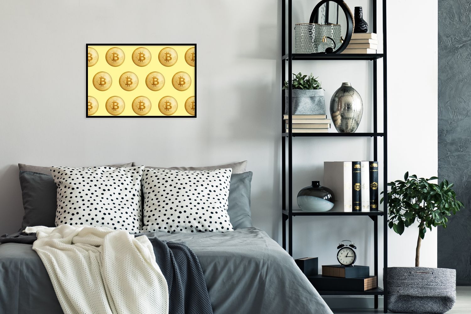 Poster - 60x40 cm - Bitcoin - Gold - Muster - Gelb