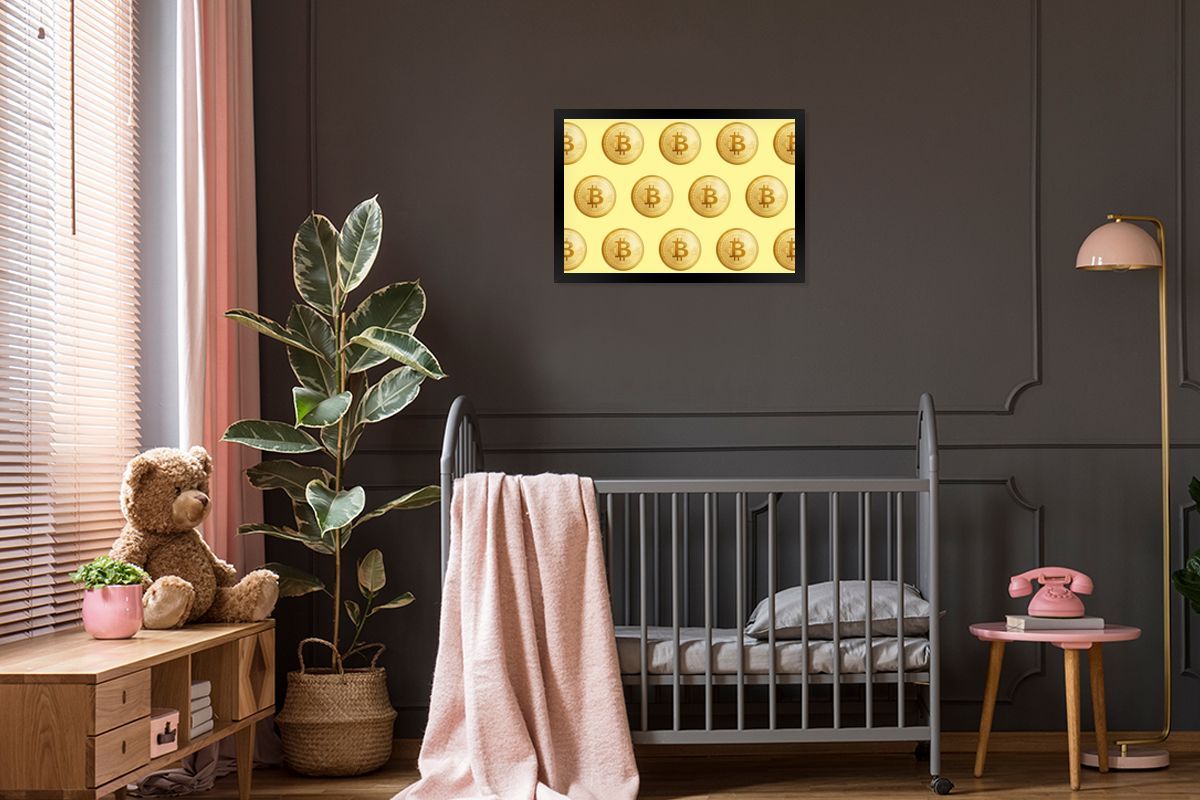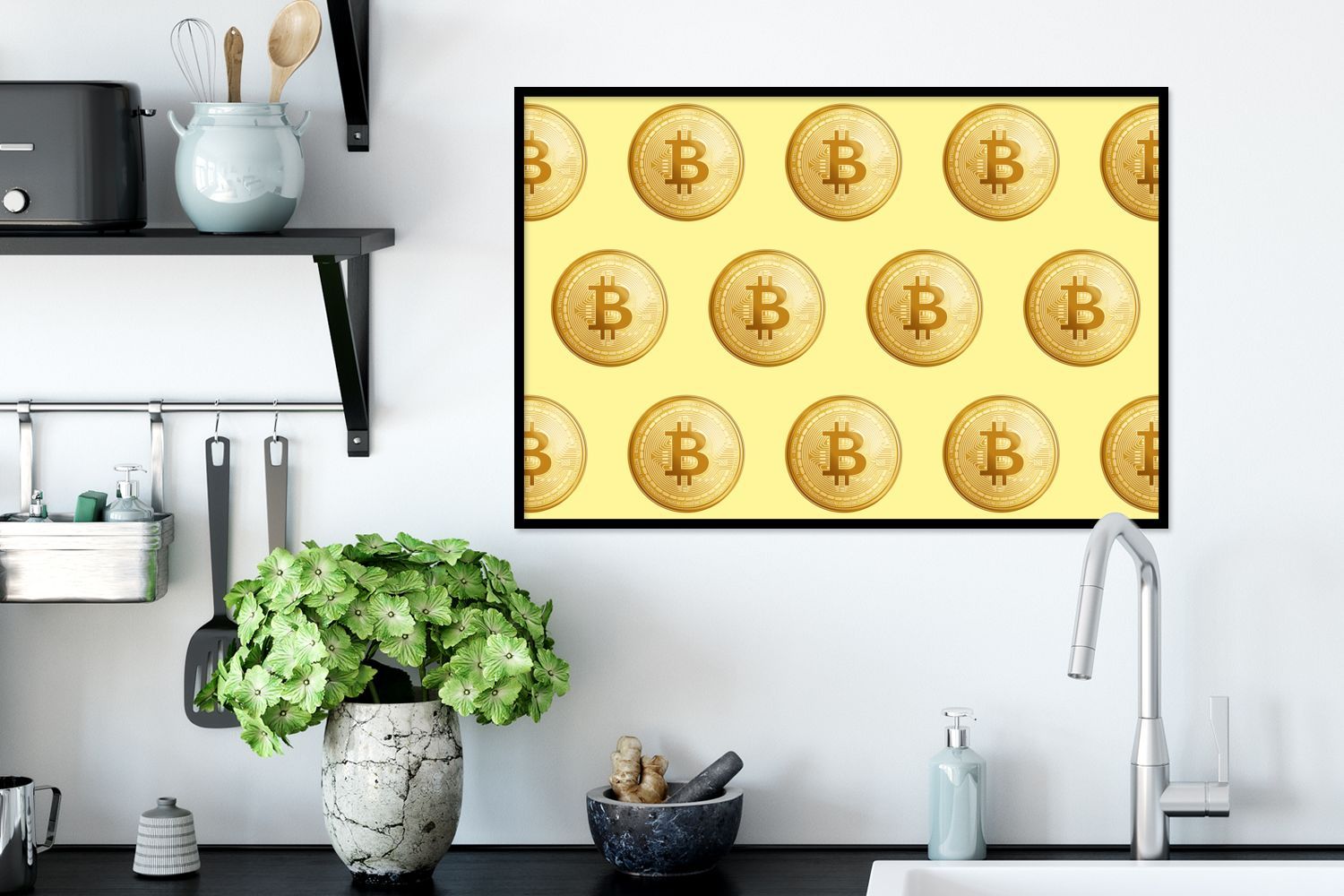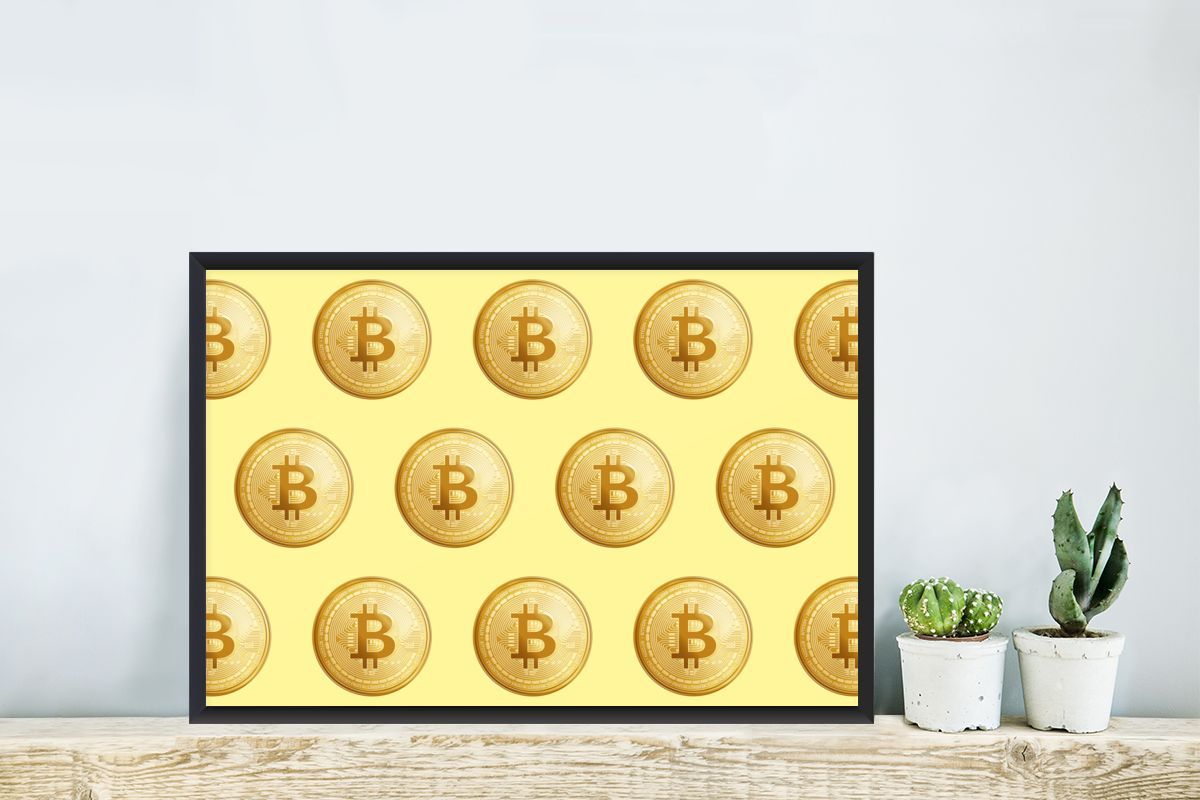 Poster - 60x40 cm - Bitcoin - Gold - Muster - Gelb