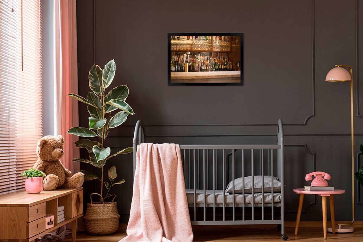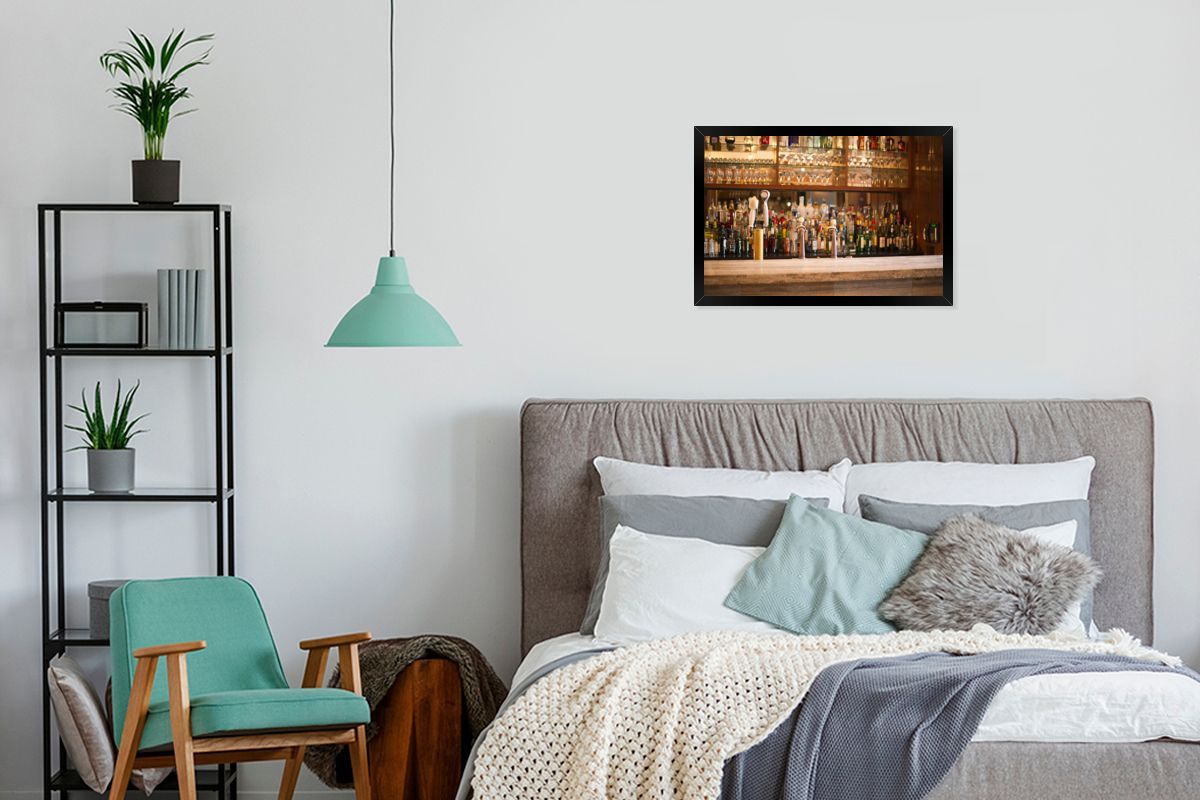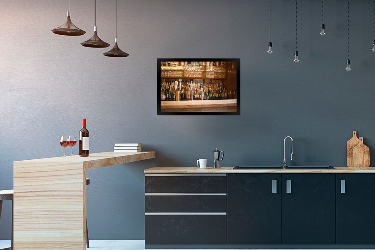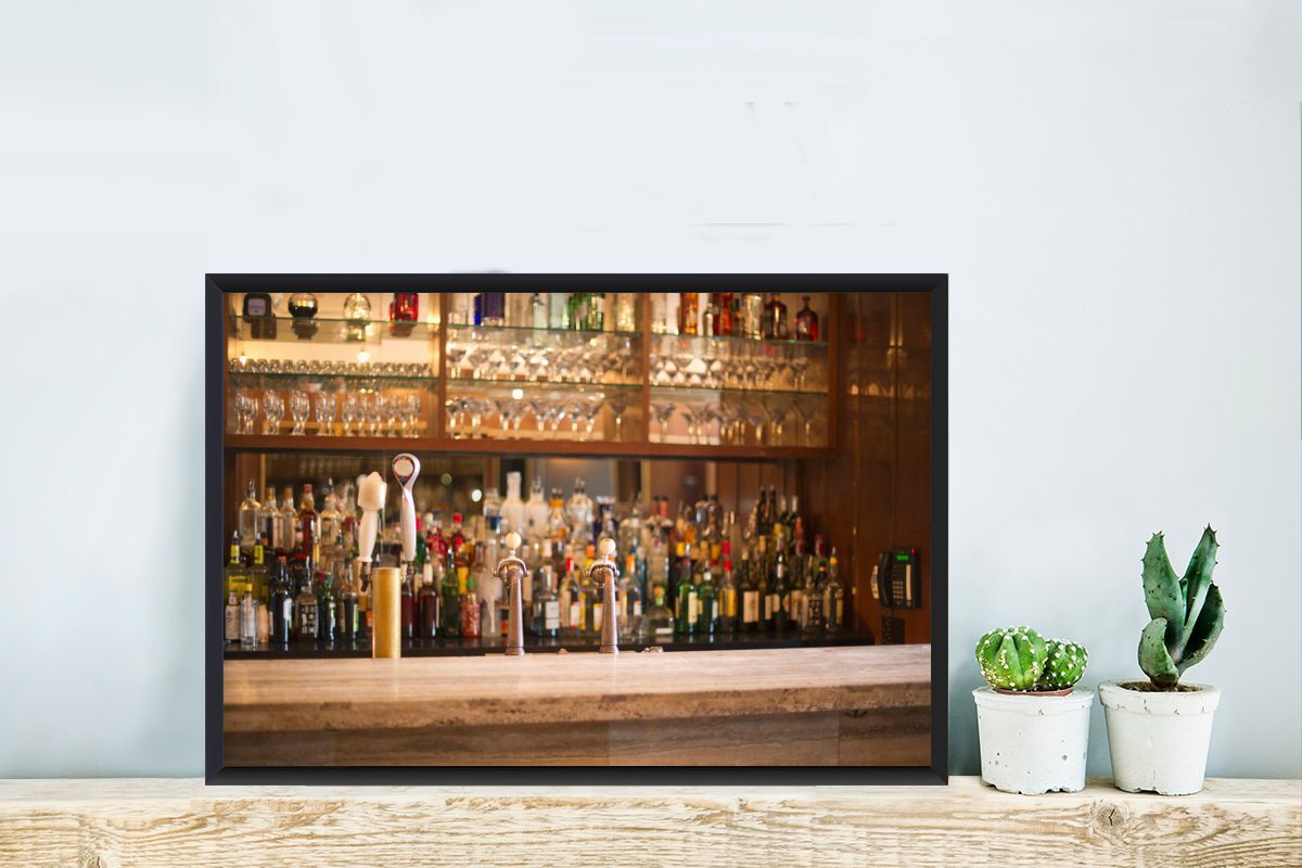 Poster - 60x40 cm - Schnapsflaschen und Gläser auf einer Bar