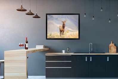 • Poster - 80x60 cm - Hirsche - Berge - Gras (Gr. 80x60 cm)