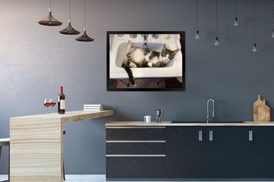 • Poster - 80x60 cm - Katze - Waschbecken - Badezimmer (Gr. 80x60 cm)