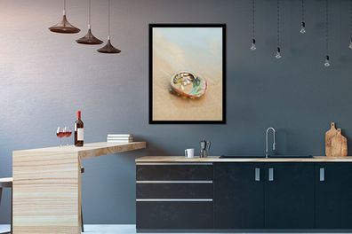 • Poster - 60x80 cm - Perlen in Austernschalen am Strand (Gr. 60x80 cm)