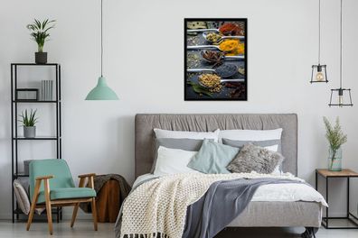 • Poster - 60x80 cm - Nahaufnahme von Kräutern auf einem Löffel (Gr. 60x80 cm)