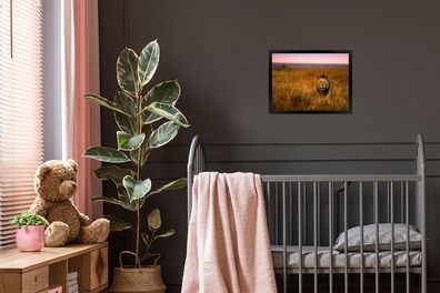• Poster - 80x60 cm - Löwe - Savanne - Gras (Gr. 80x60 cm)