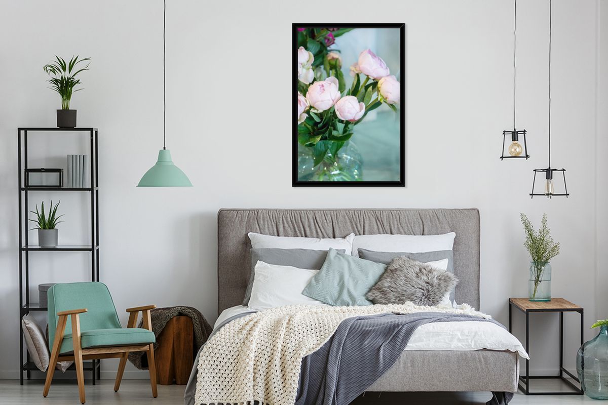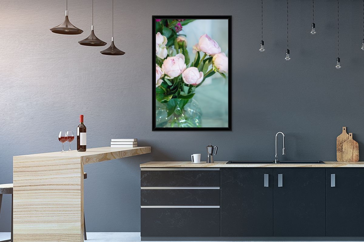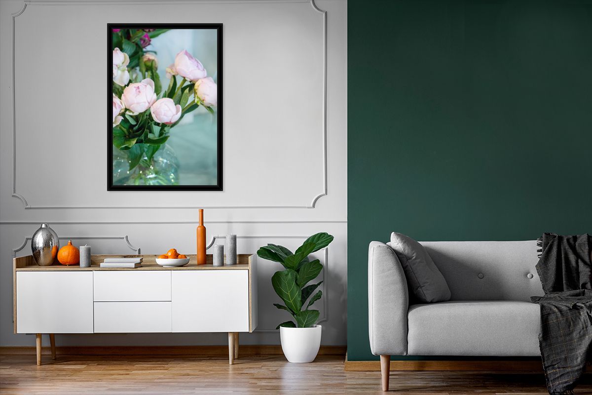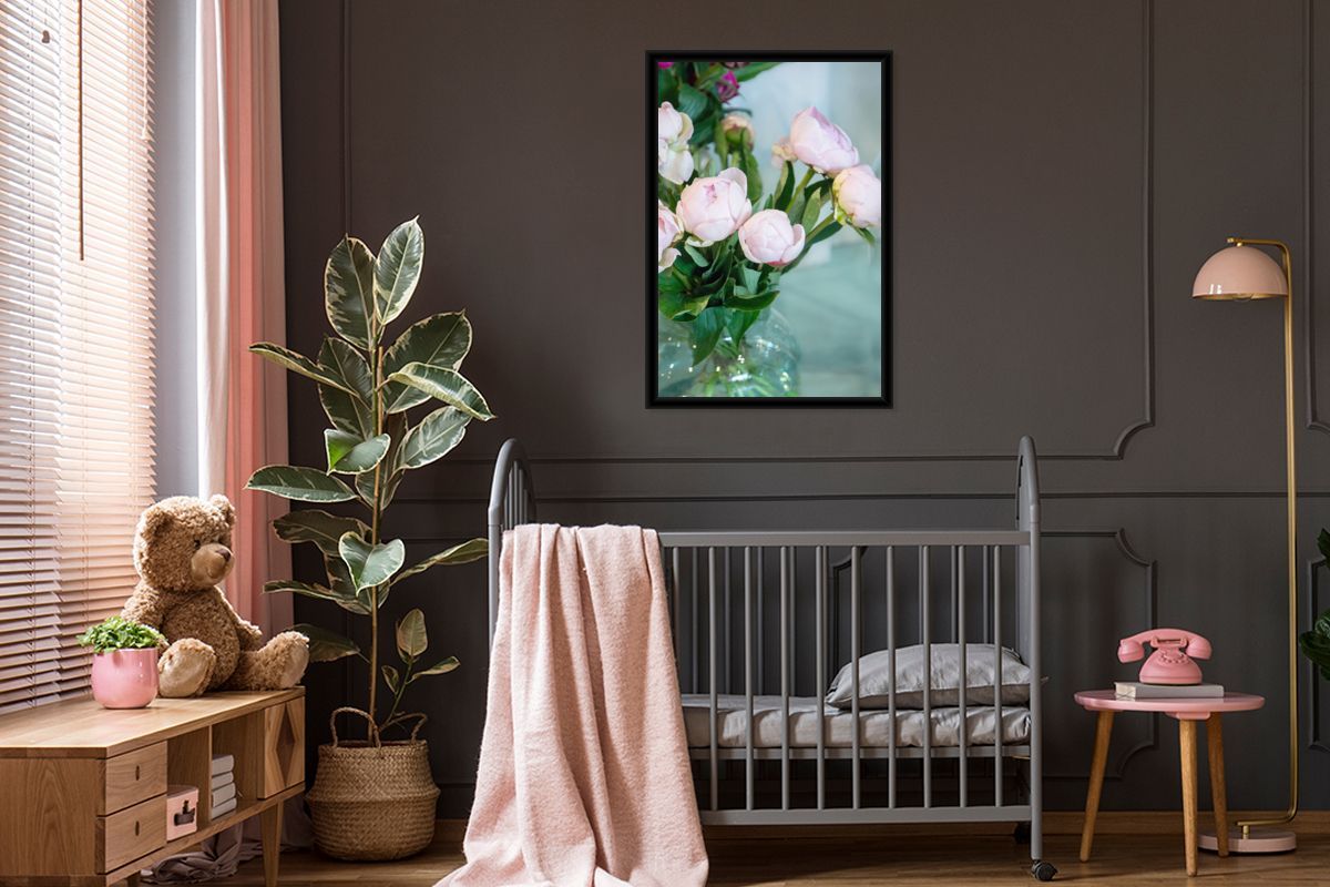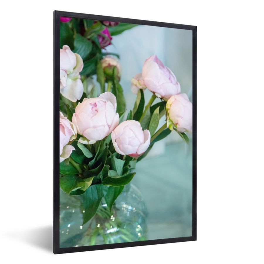 Poster - 60x90 cm - Knospen von rosa Pfingstrosen in einer Vase