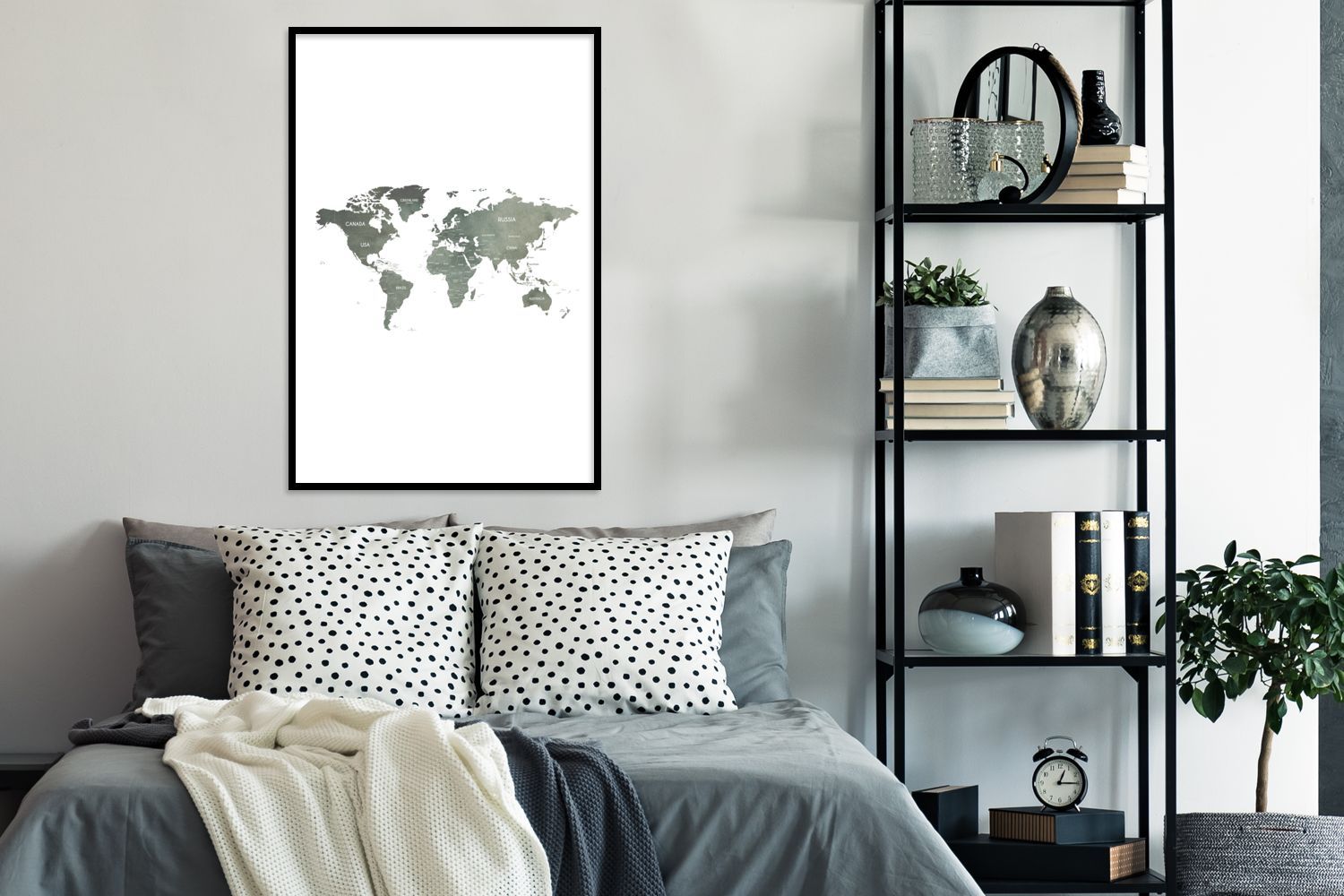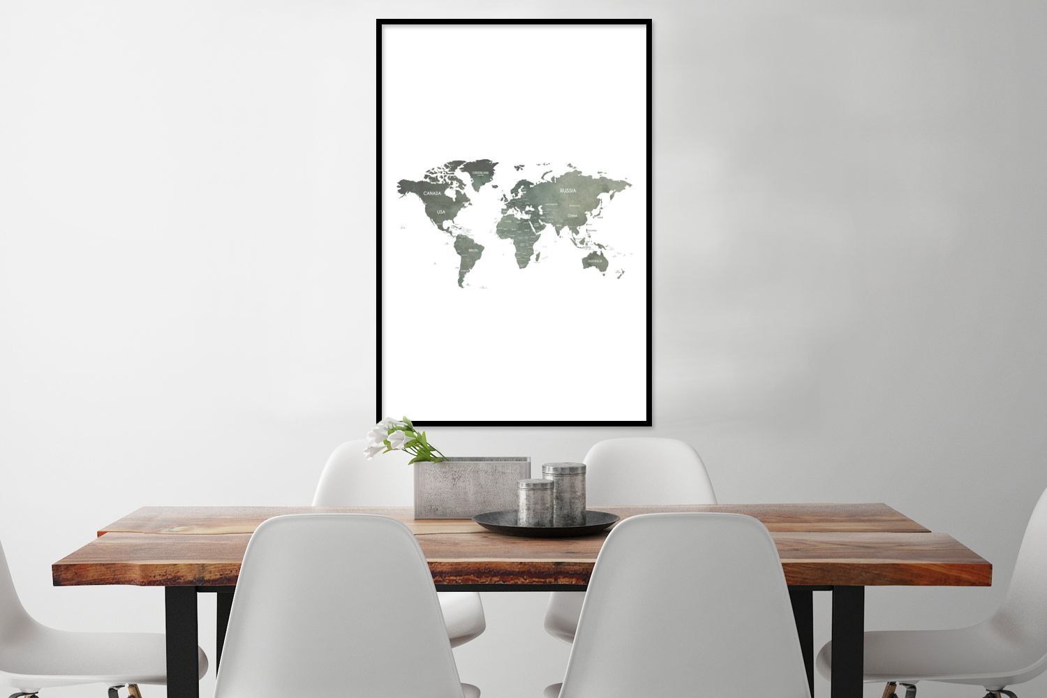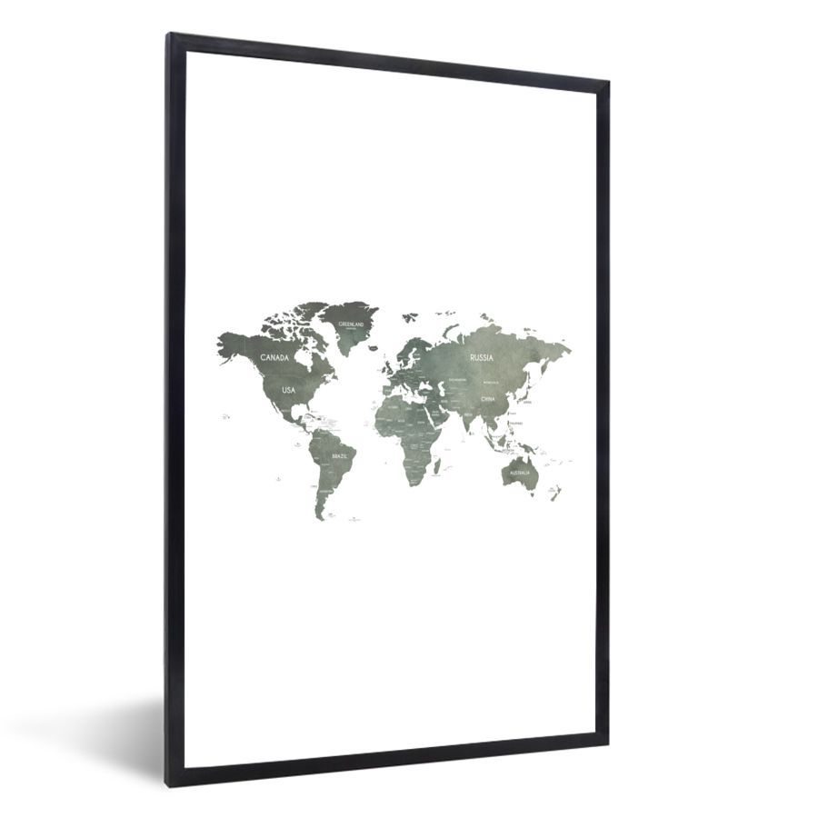 Poster - 60x90 cm - Weltkarte - Grau - Land