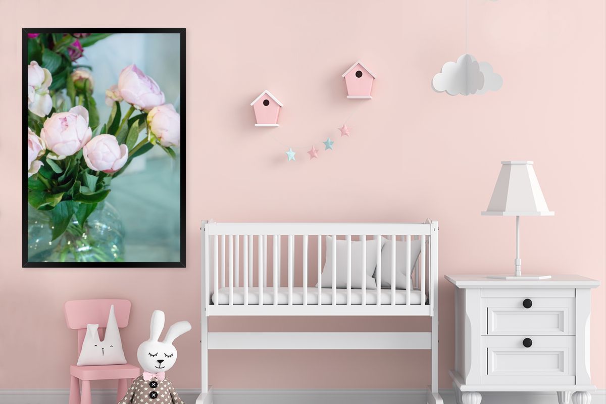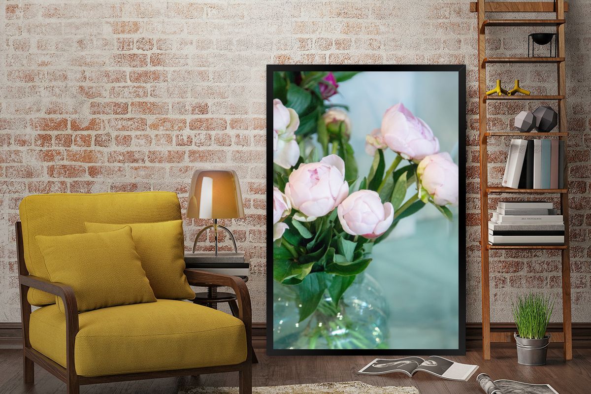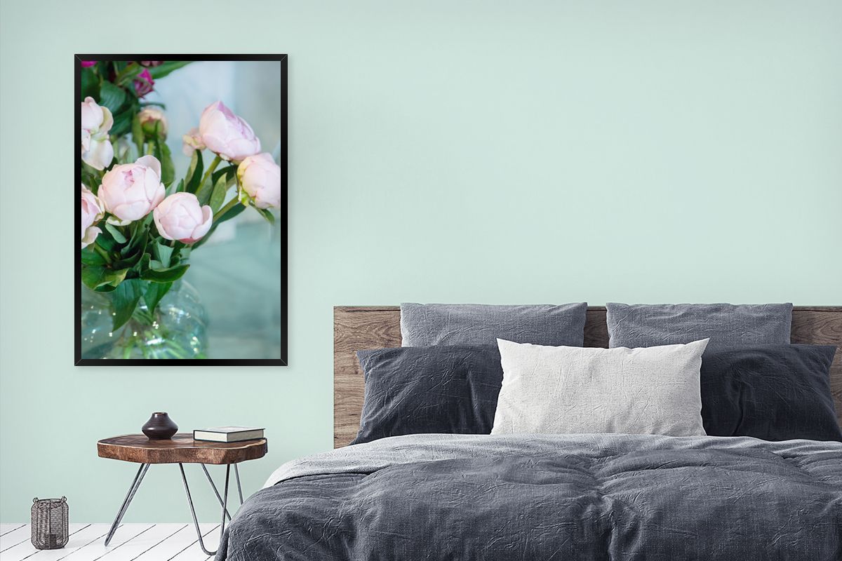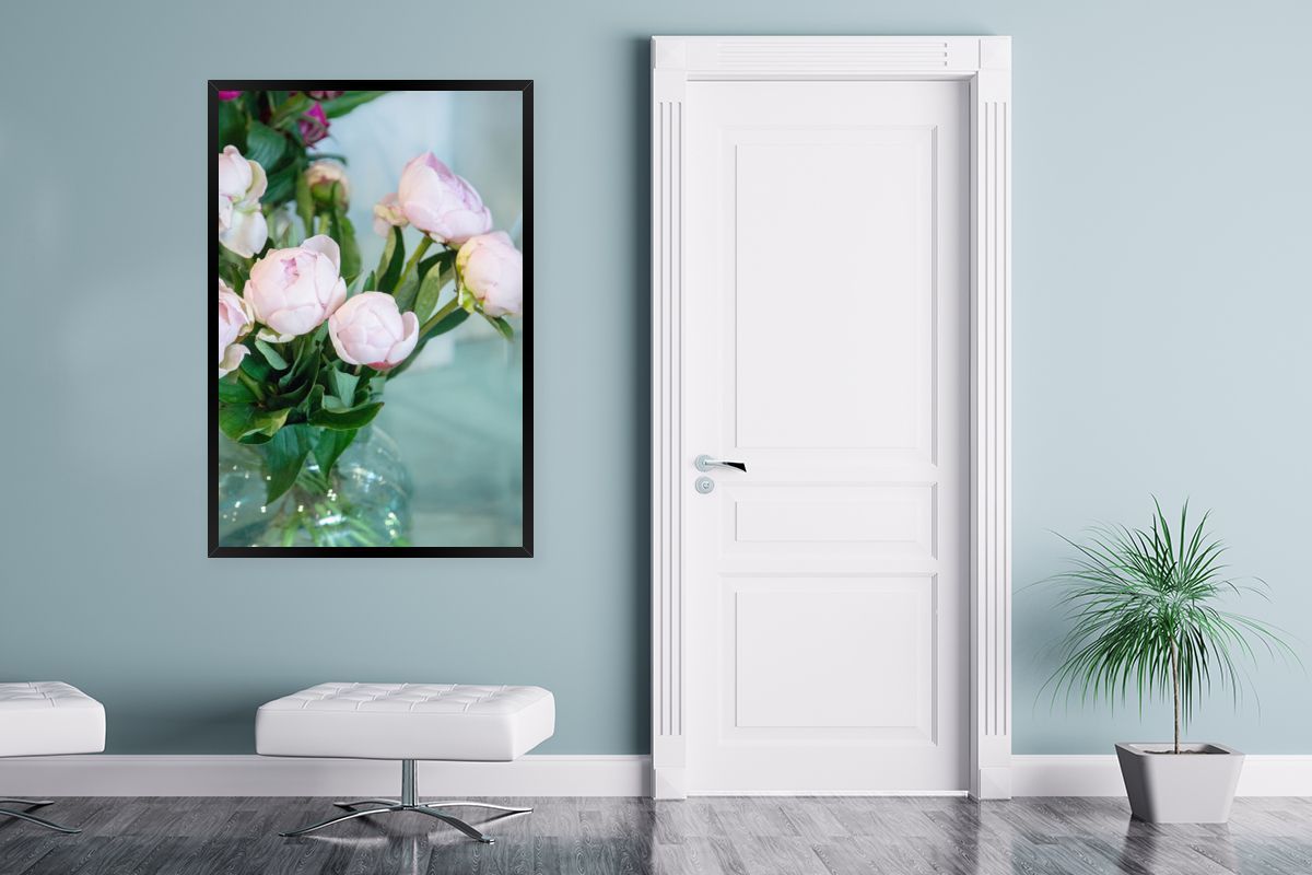 Poster - 80x120 cm - Knospen von rosa Pfingstrosen in einer Vase