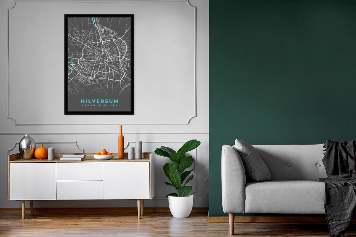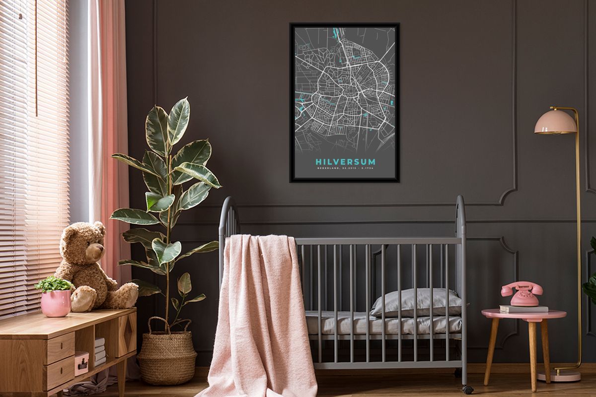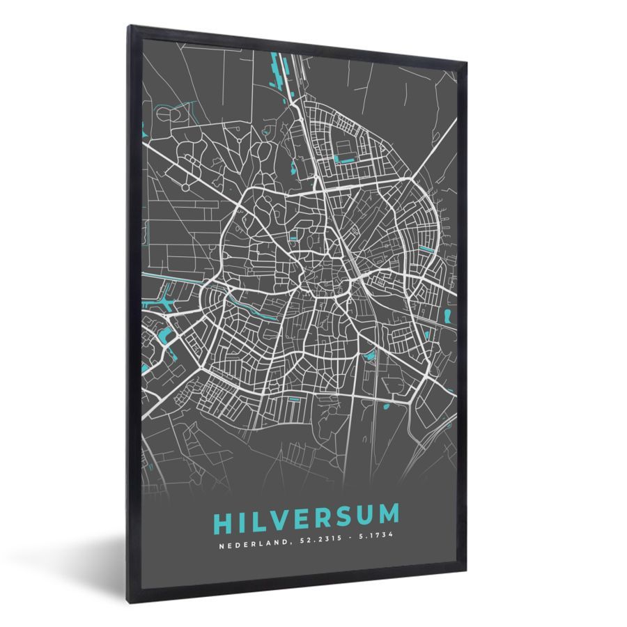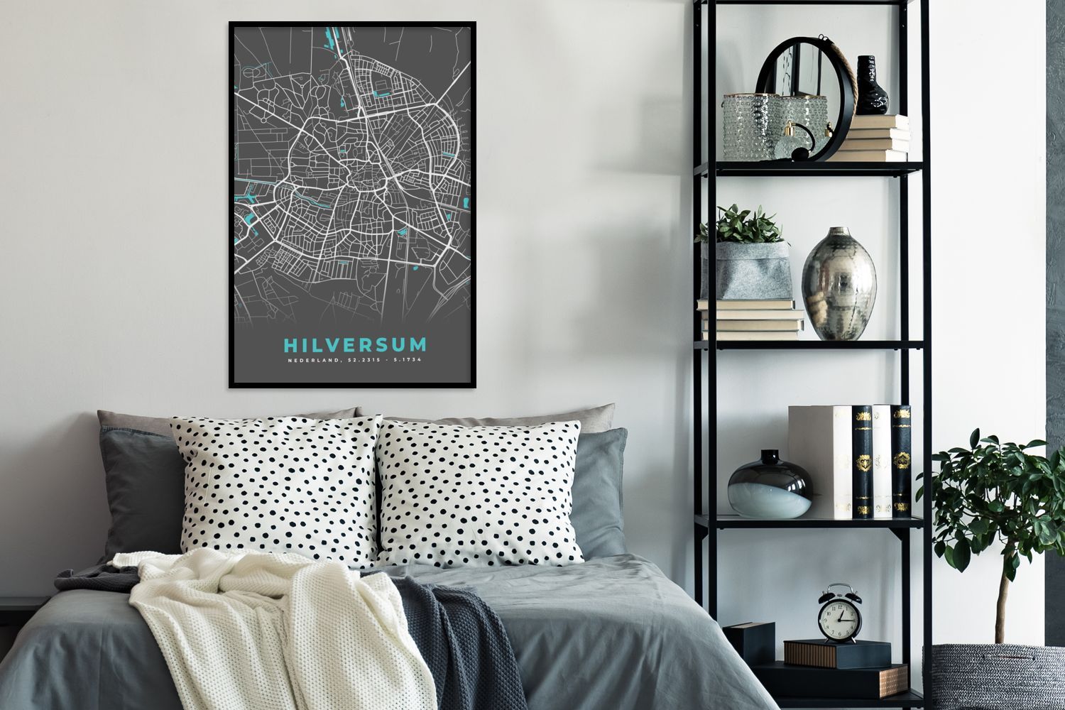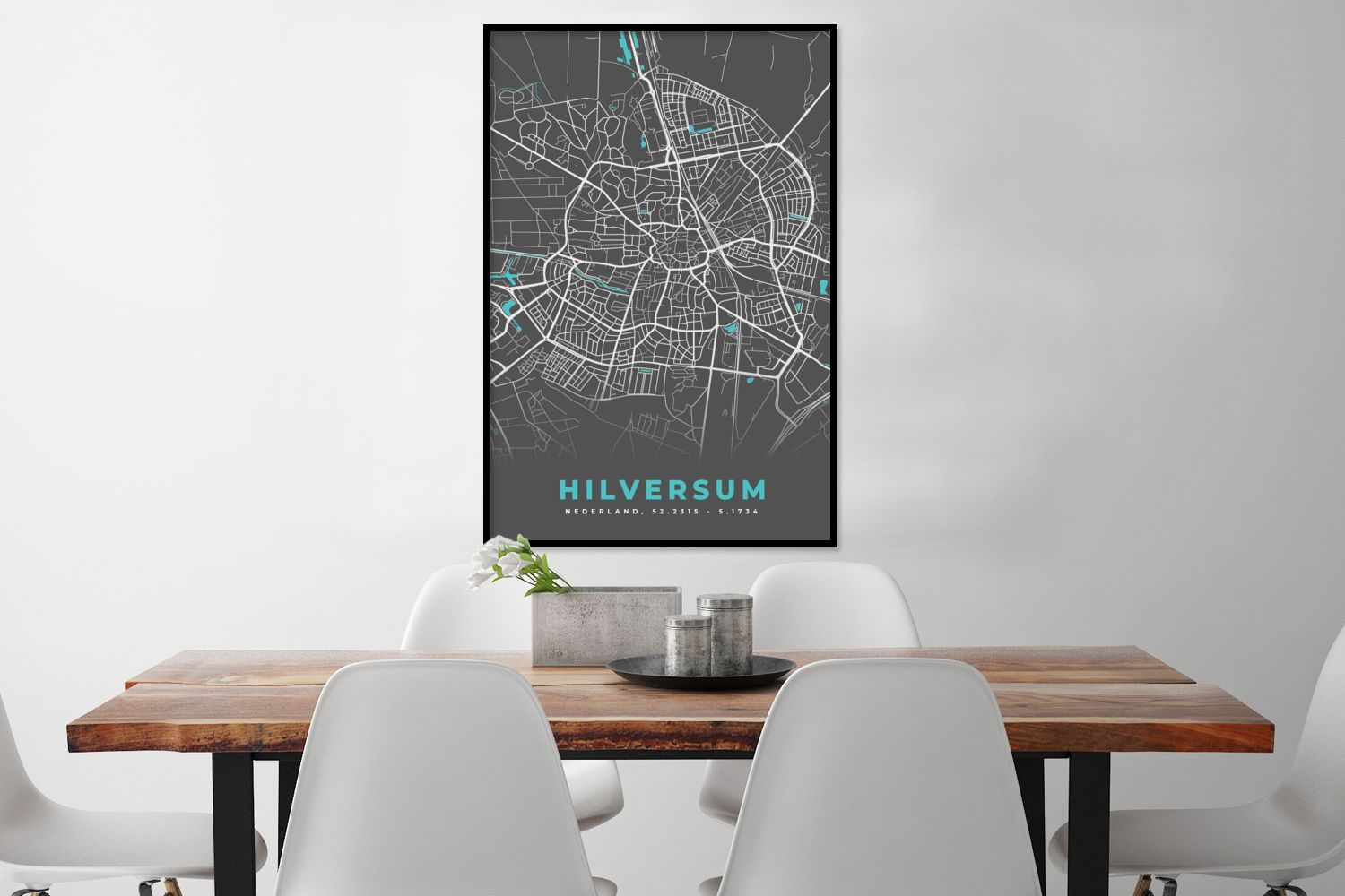 Poster - 80x120 cm - Stadtplan - Hilversum - Grau - Blau