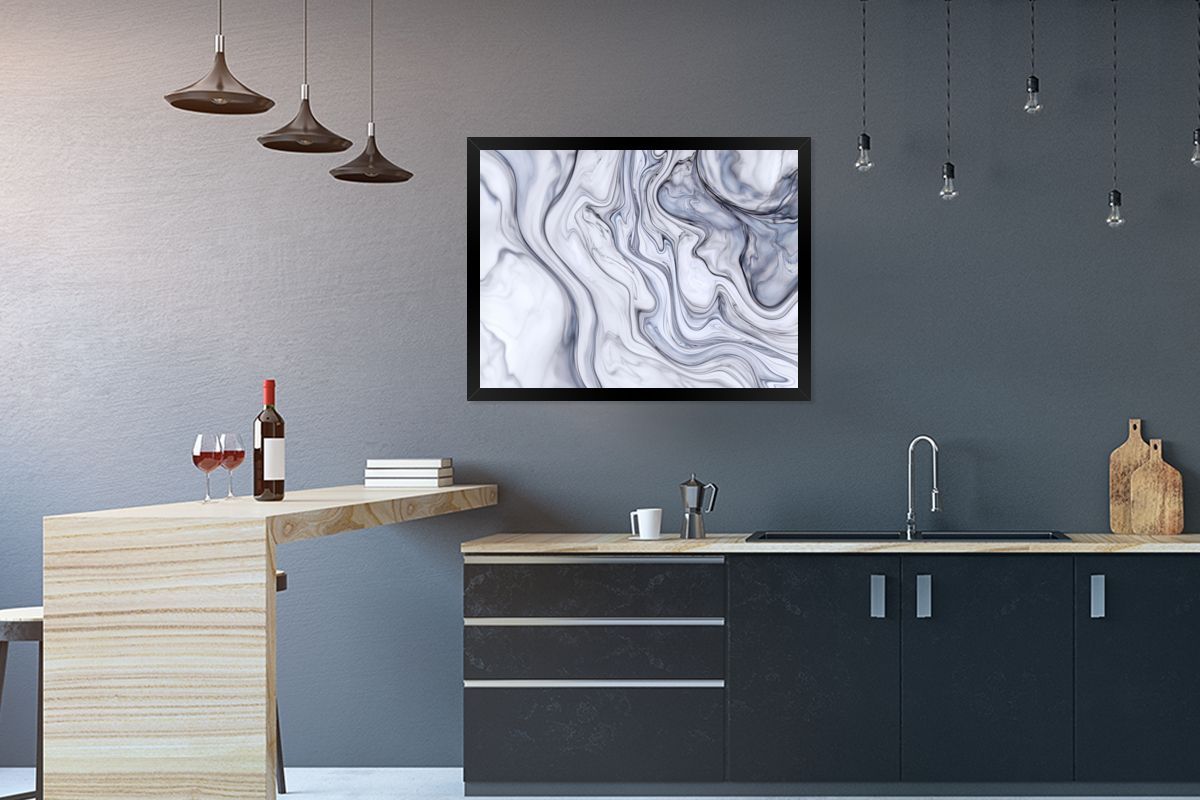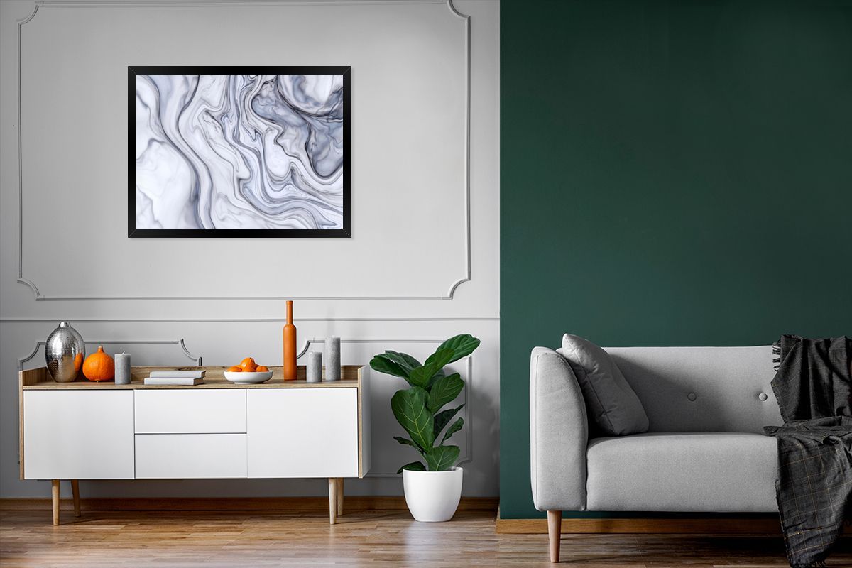 Poster - 80x60 cm - Marmor - Weiß - Schwarz