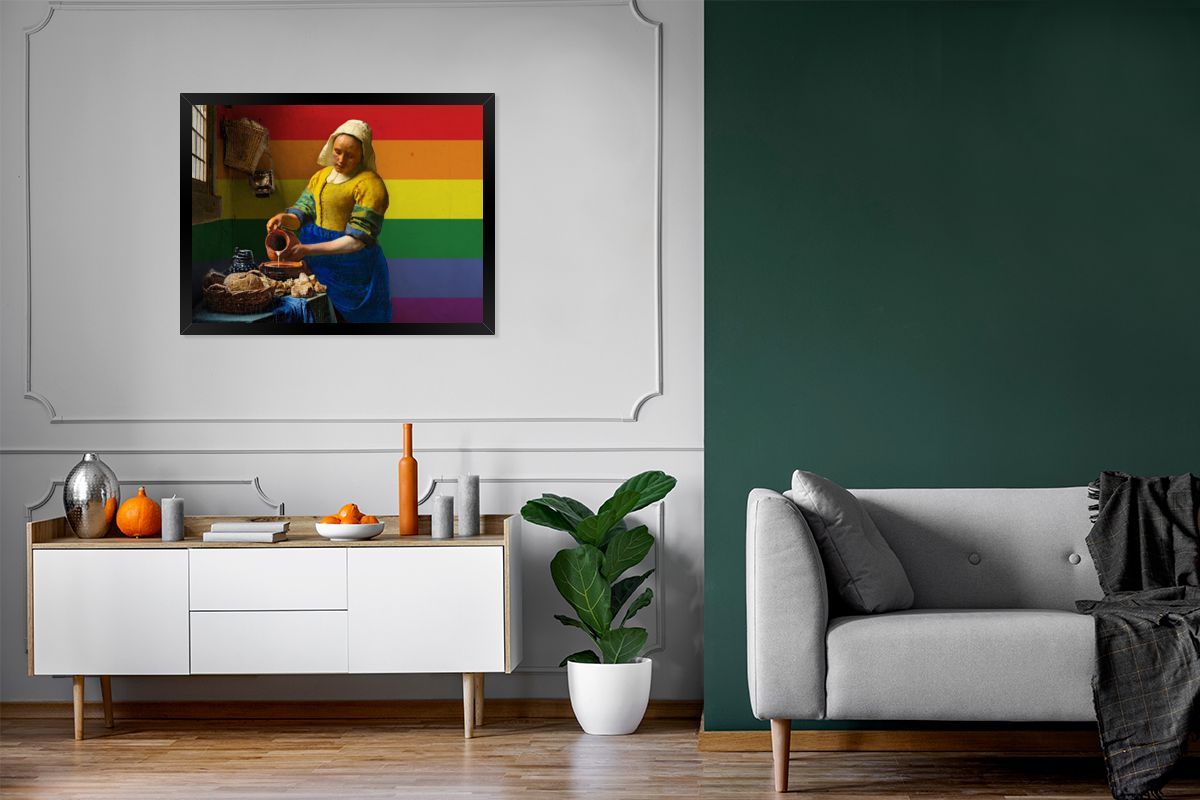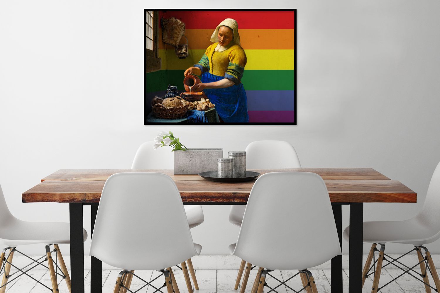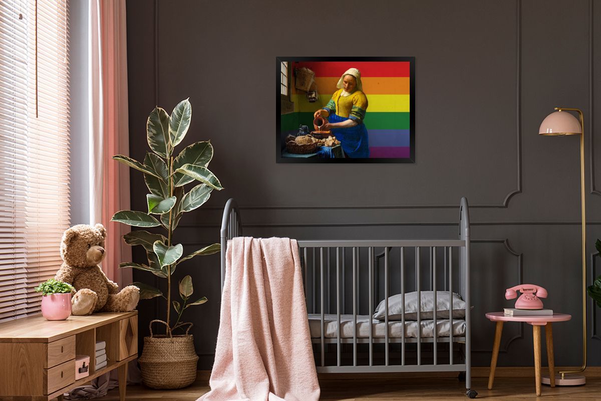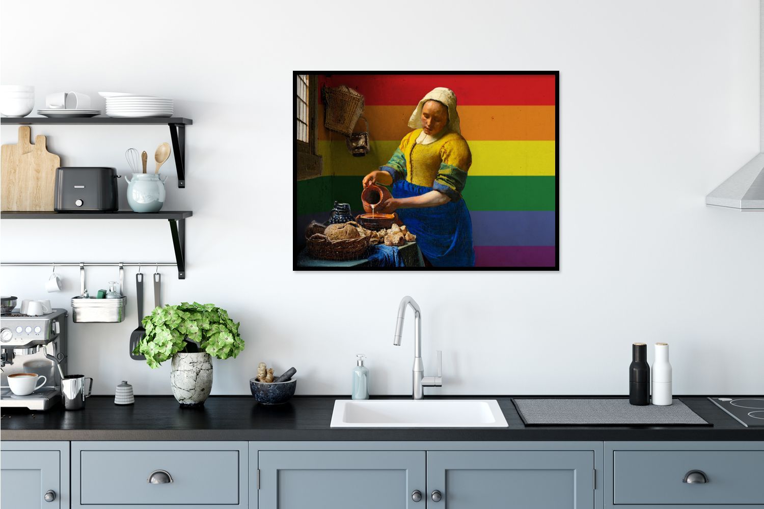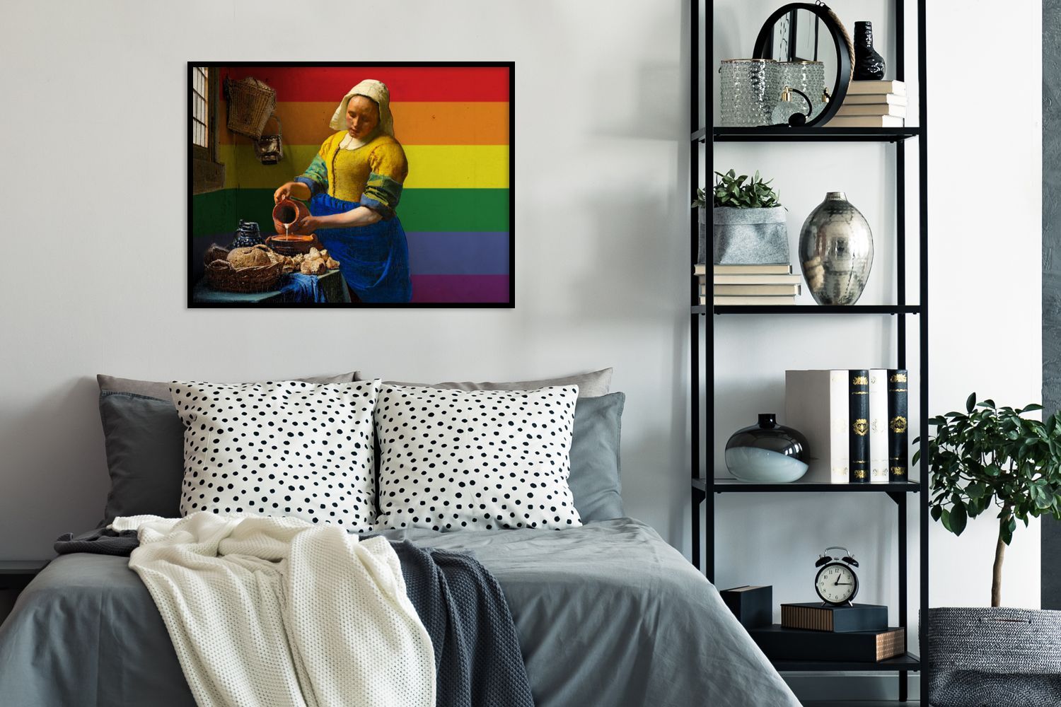 Poster - 80x60 cm - Vermeer - Milchmädchen - Regenbogen
